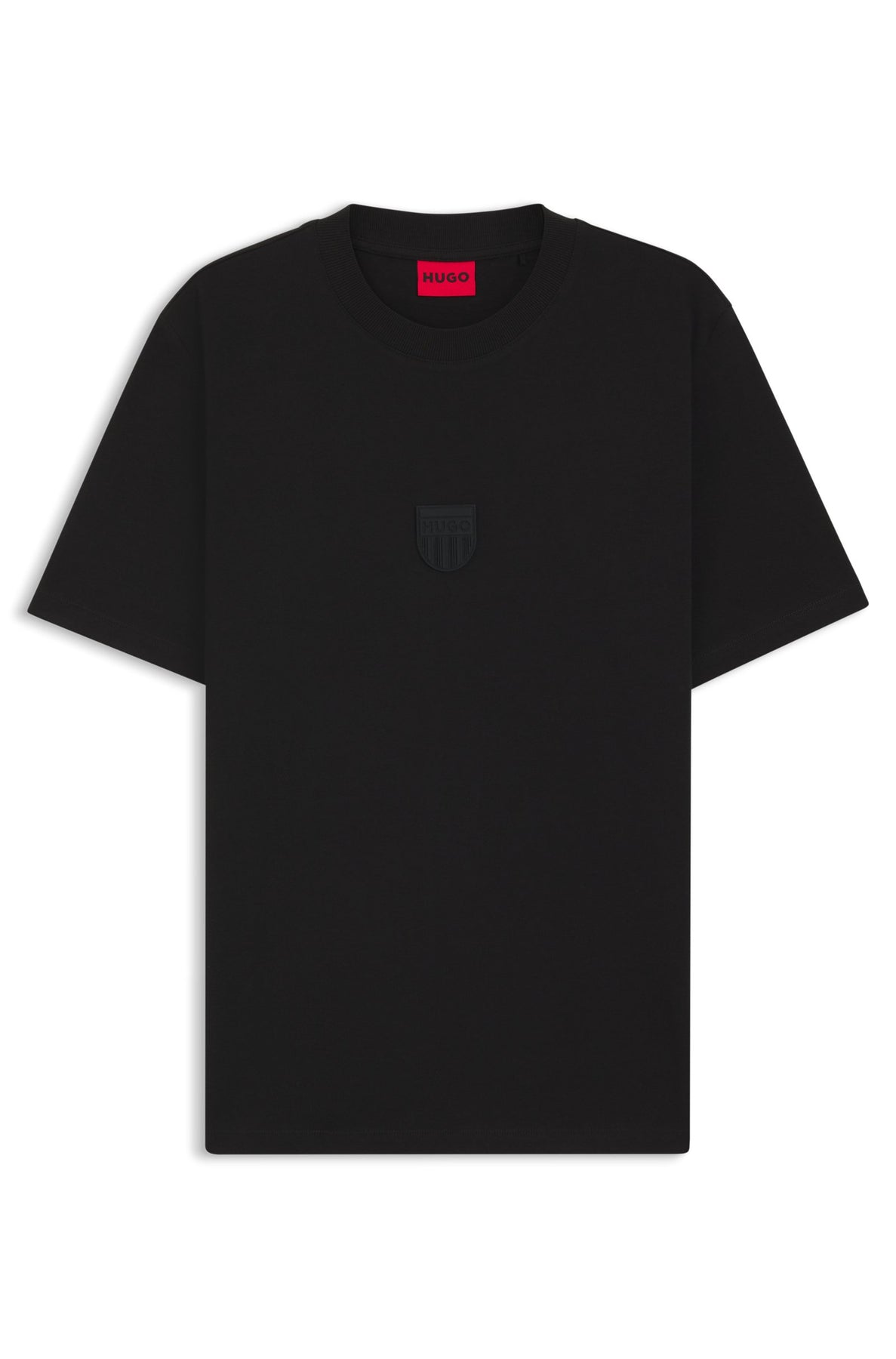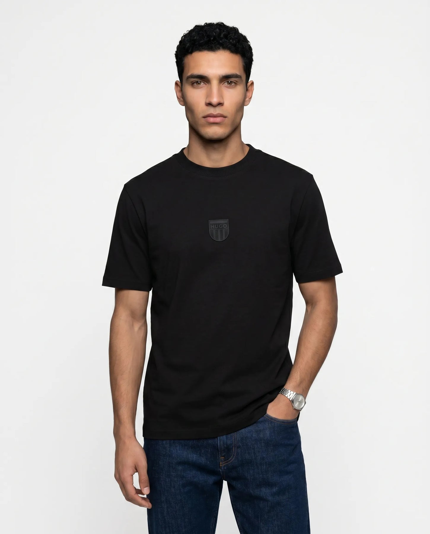 טי-שירט אורבנית ומלאת סטייל מקולקציית HUGO (הוגו בוס), דגם Darvish. עשויה מבד כותנה רך במיוחד המציע נוחות מרבית לאורך שעות. מה שנותן לחולצה הזו את האופי הייחודי שלה הוא לוגו הסיליקון (Rubber-Logo) הבולט בחזית, שמעניק לה טקסטורה מעניינת ומראה תלת-ממדי עכשווי ונועז. גזרתה הישרה מבטיחה מראה מחמיא שיושב מדויק על הגוף. פריט סטייטמנט שמשדרג בשנייה כל הופעת סטריט-וור.
