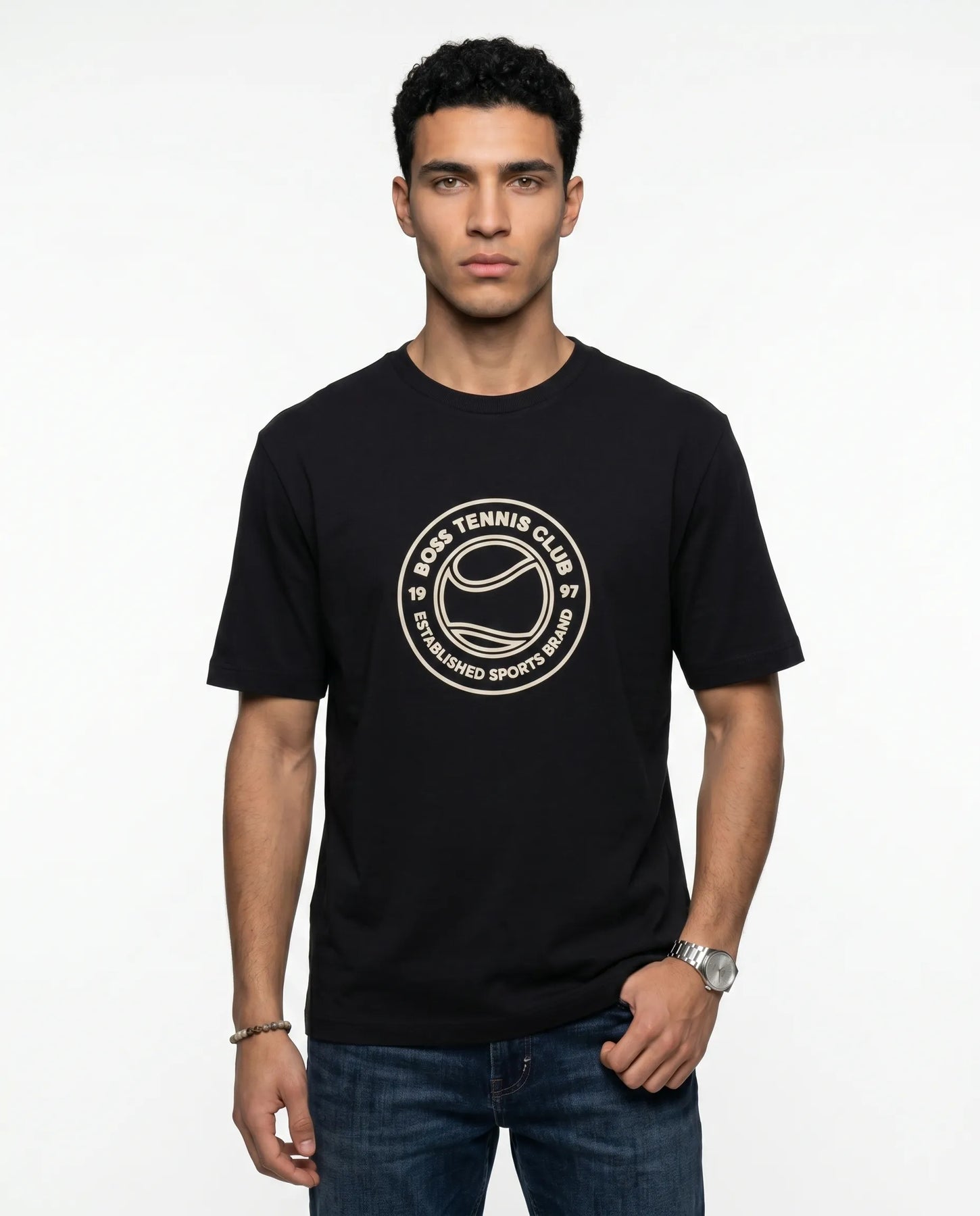 חולצת טי-שירט קלאסית עם טוויסט ייחודי מבית BOSS (הוגו בוס) לגבר המודרני. החולצה מעוצבת בגזרה ישרה (Regular Fit) ומשלבת הדפס גרפי קדמי שמוסיף לה תחכום ועניין, מבלי לוותר על קווים נקיים וסולידיים. הבד העשוי מ-100% כותנה מבטיח תחושה אוורירית, קלילה ונעימה על העור גם בימים חמים. מושלמת לשילוב עם מכנסי צ'ינו, ברמודה או ג'ינס כהה למראה מוקפד שאי אפשר להתעלם ממנו.
