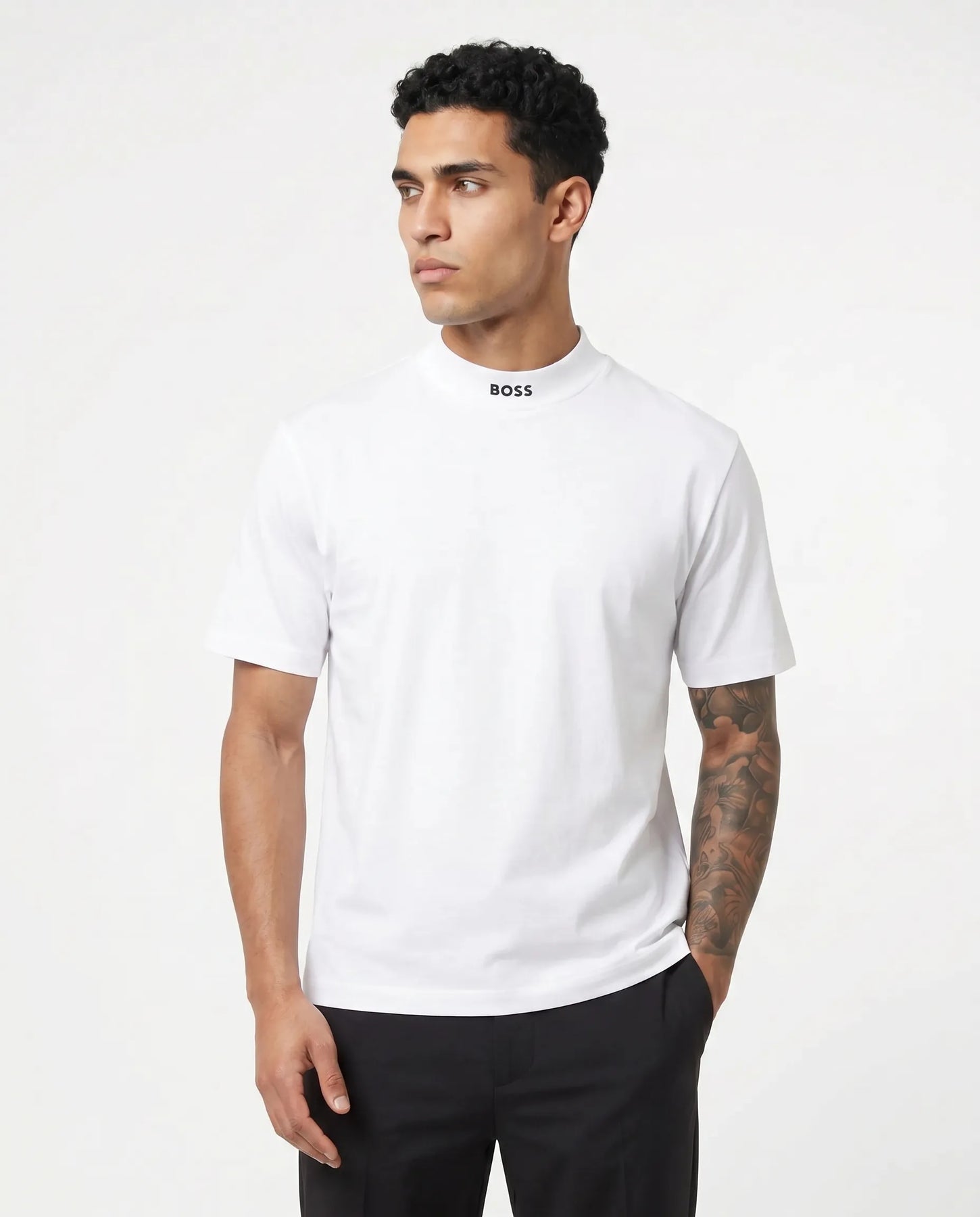 הטי-שירט הלבנה שתמיד עובדת. חולצה מבית BOSS (הוגו בוס) המשלבת פשטות יוקרתית ותפירה עילית. העיצוב החלק והנקי הופך אותה לפריט אסטרטגי במלתחה, כזה שמרים כל הופעה – בין אם זה מתחת לסריג קליל או כפריט עצמאי בימי הקיץ.