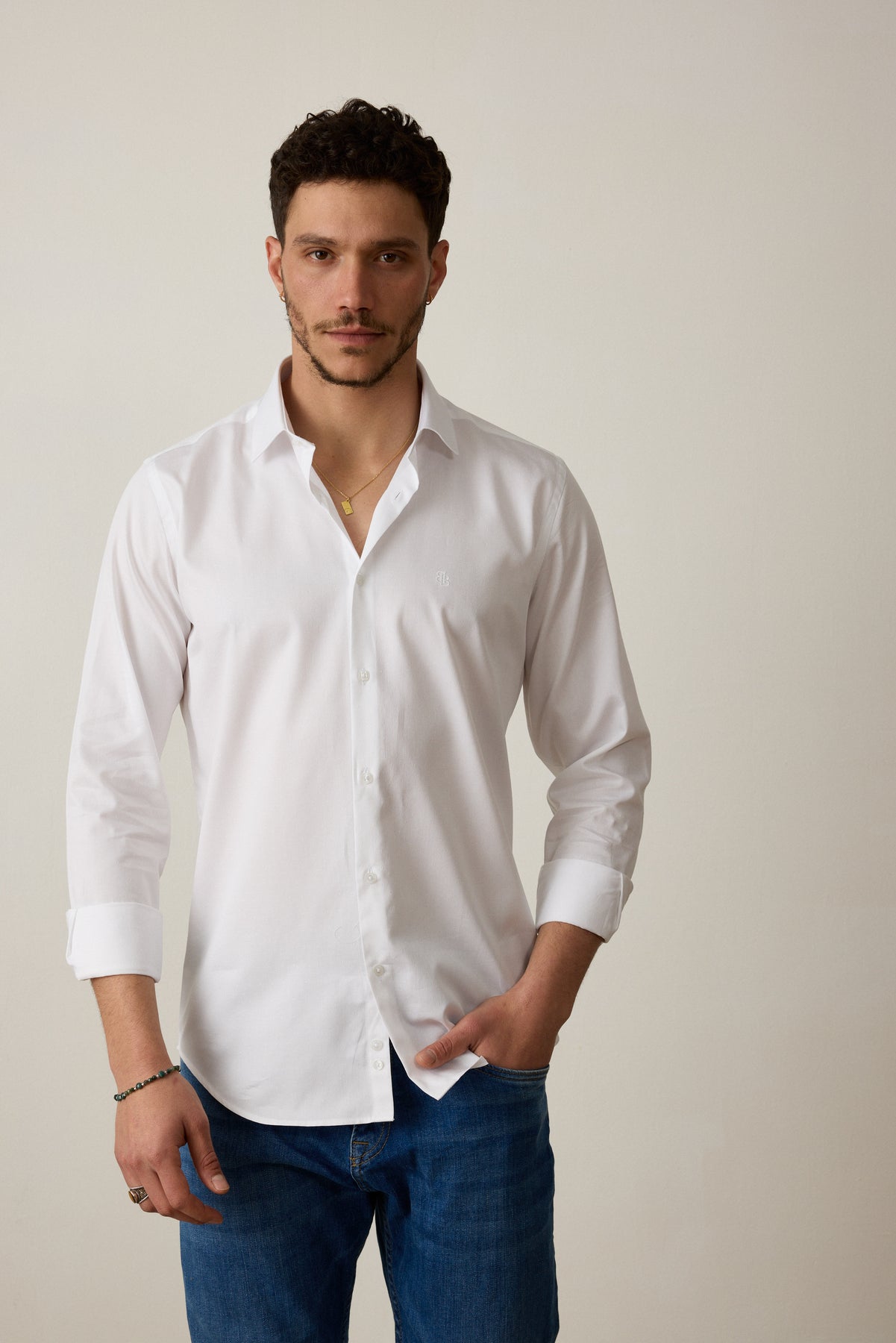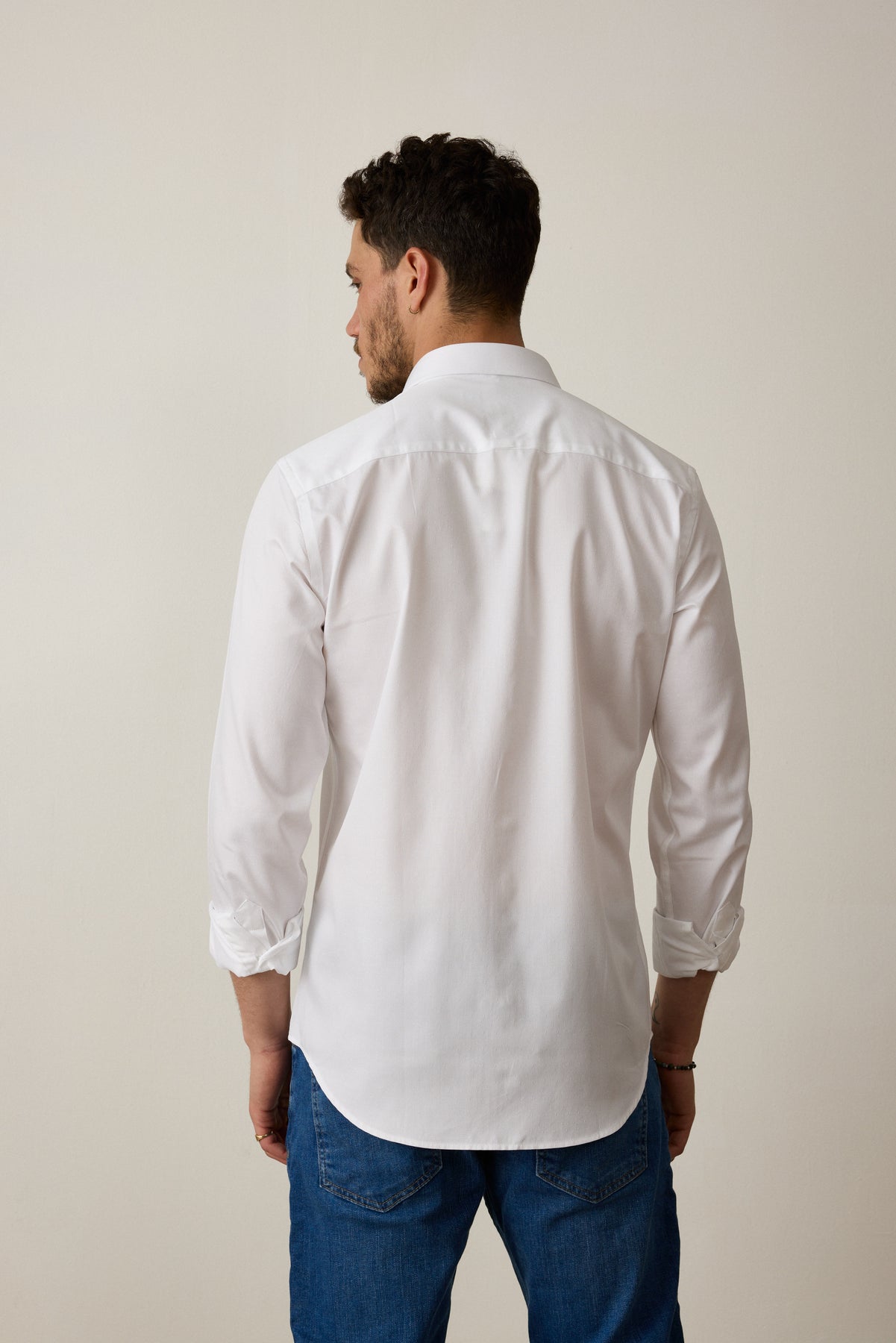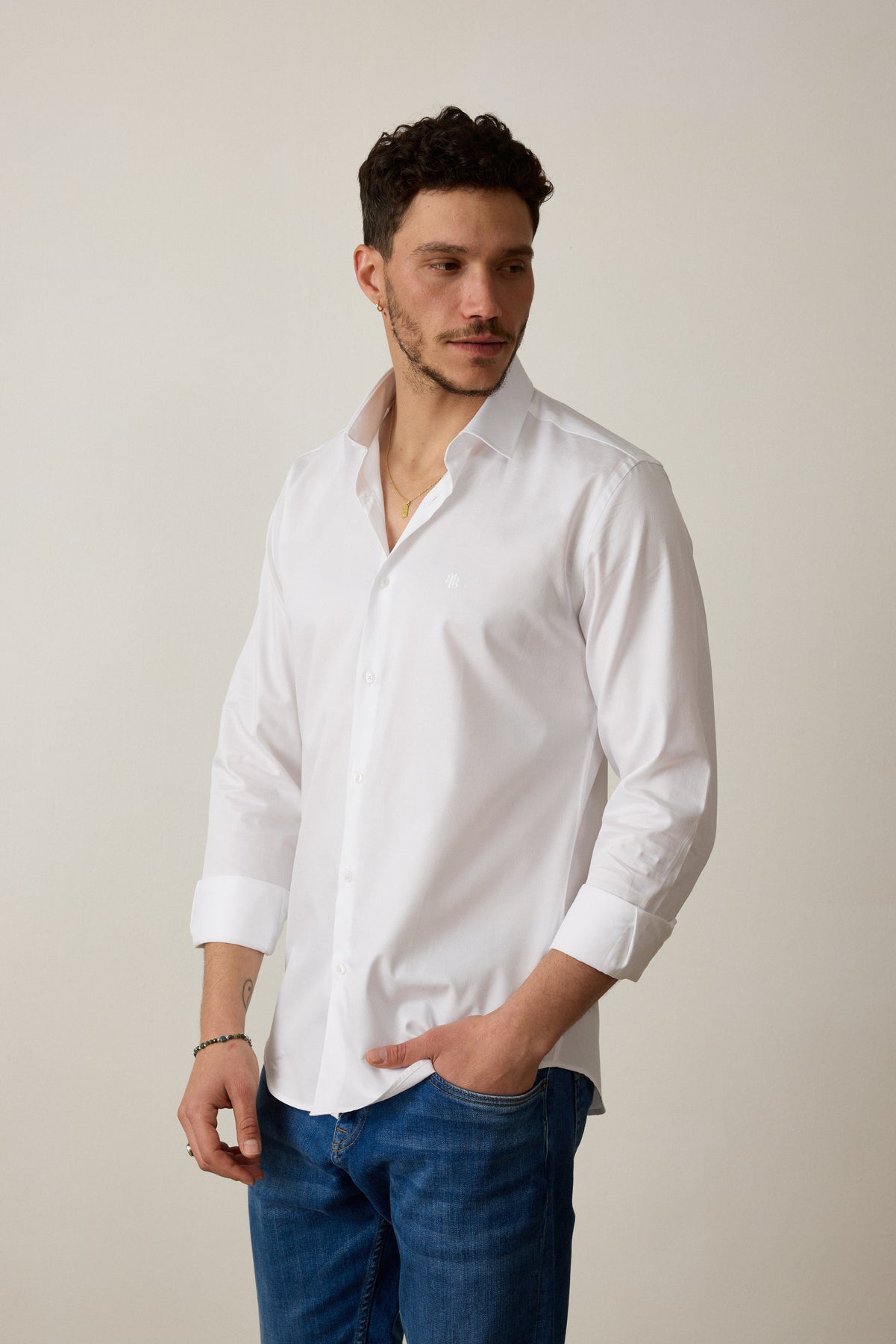 חולצה מכופתרת שרוול ארוך בגזרת SLIM - לבן