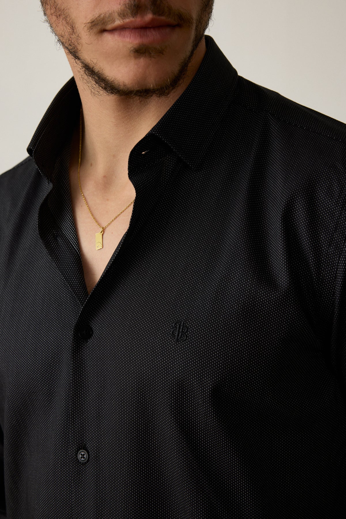 חולצה מכופתרת שרוול ארוך בגזרת SLIM - שחור
