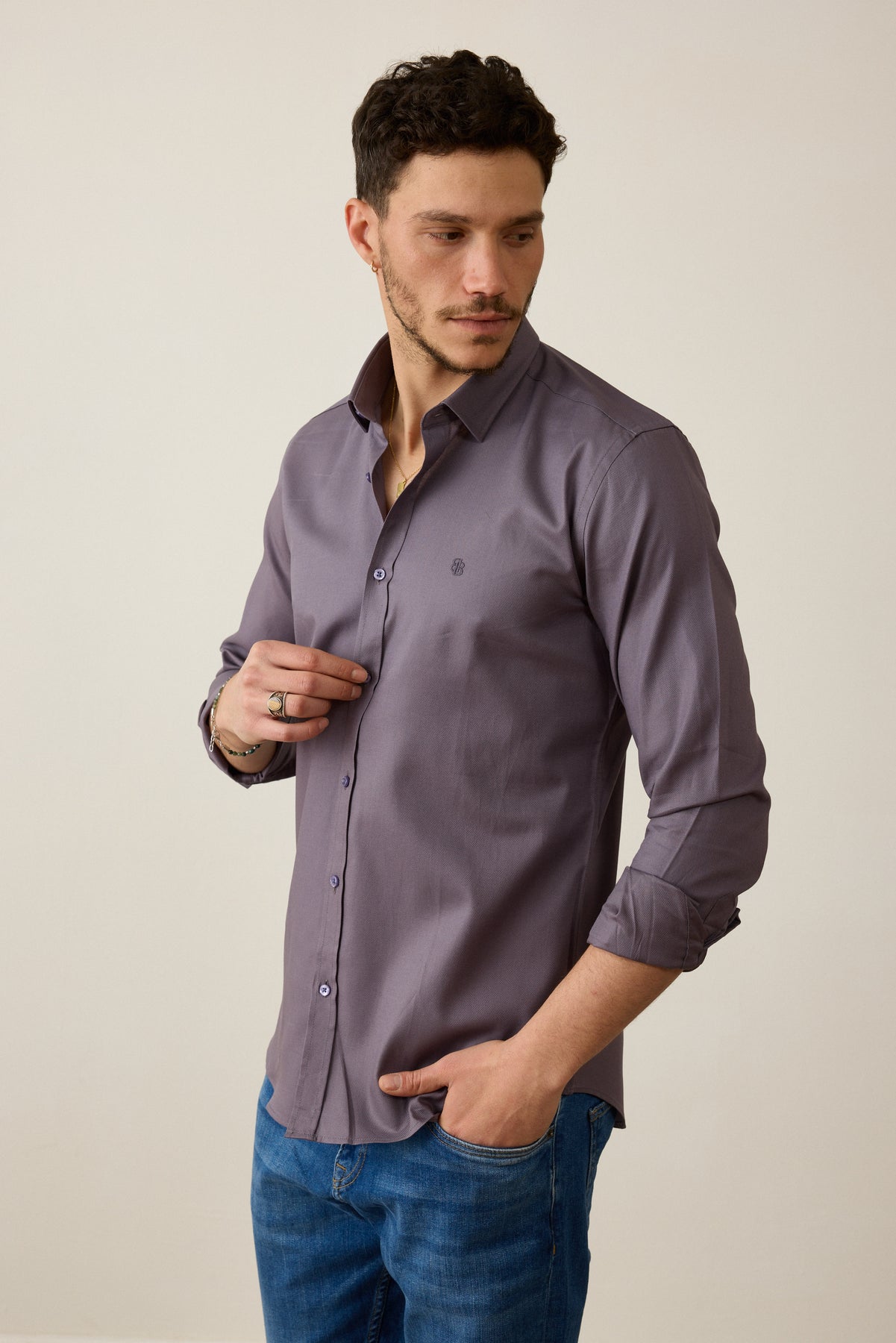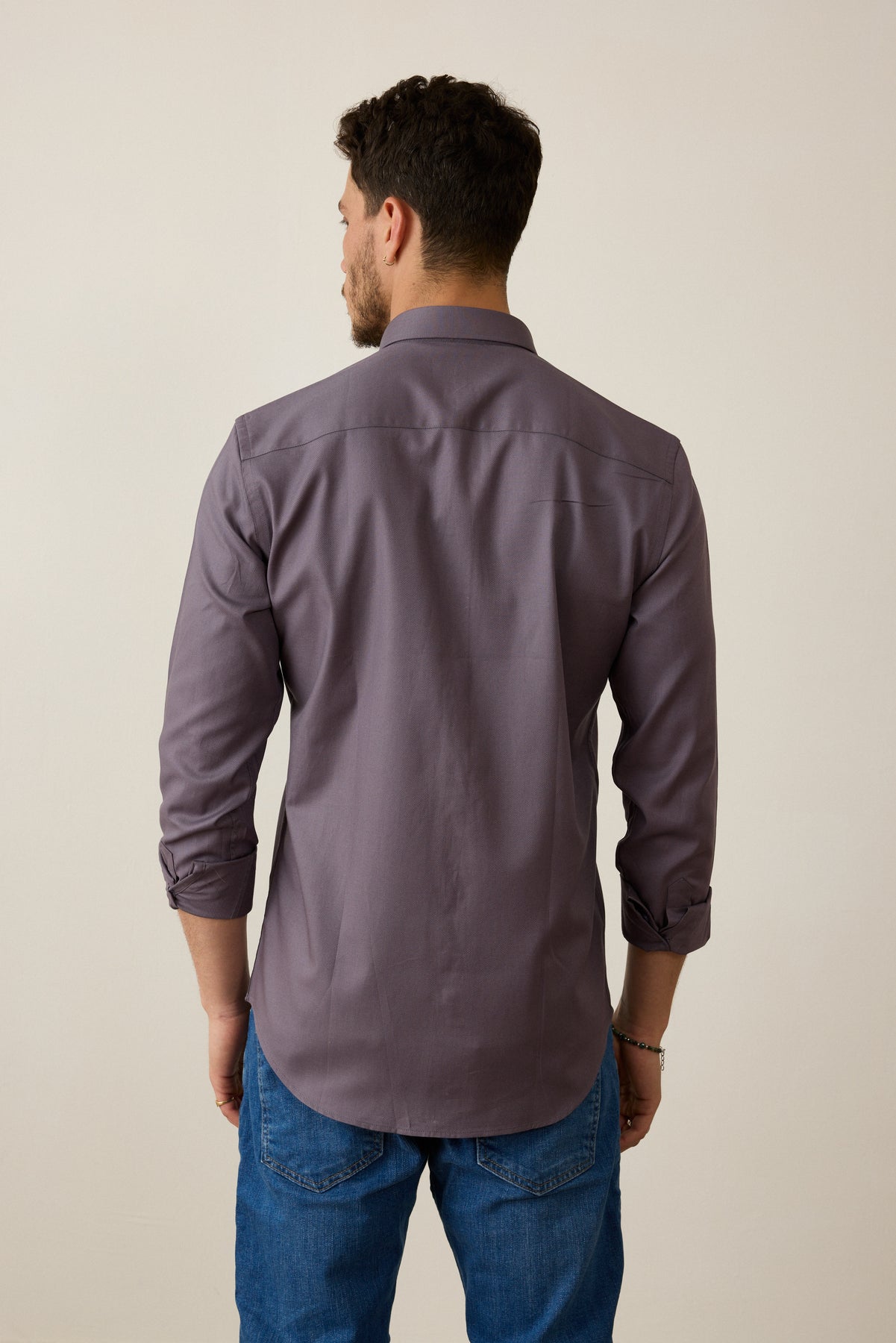 חולצה מכופתרת שרוול ארוך בגזרת SLIM - סגול