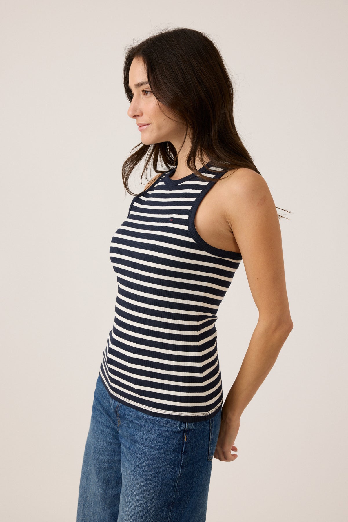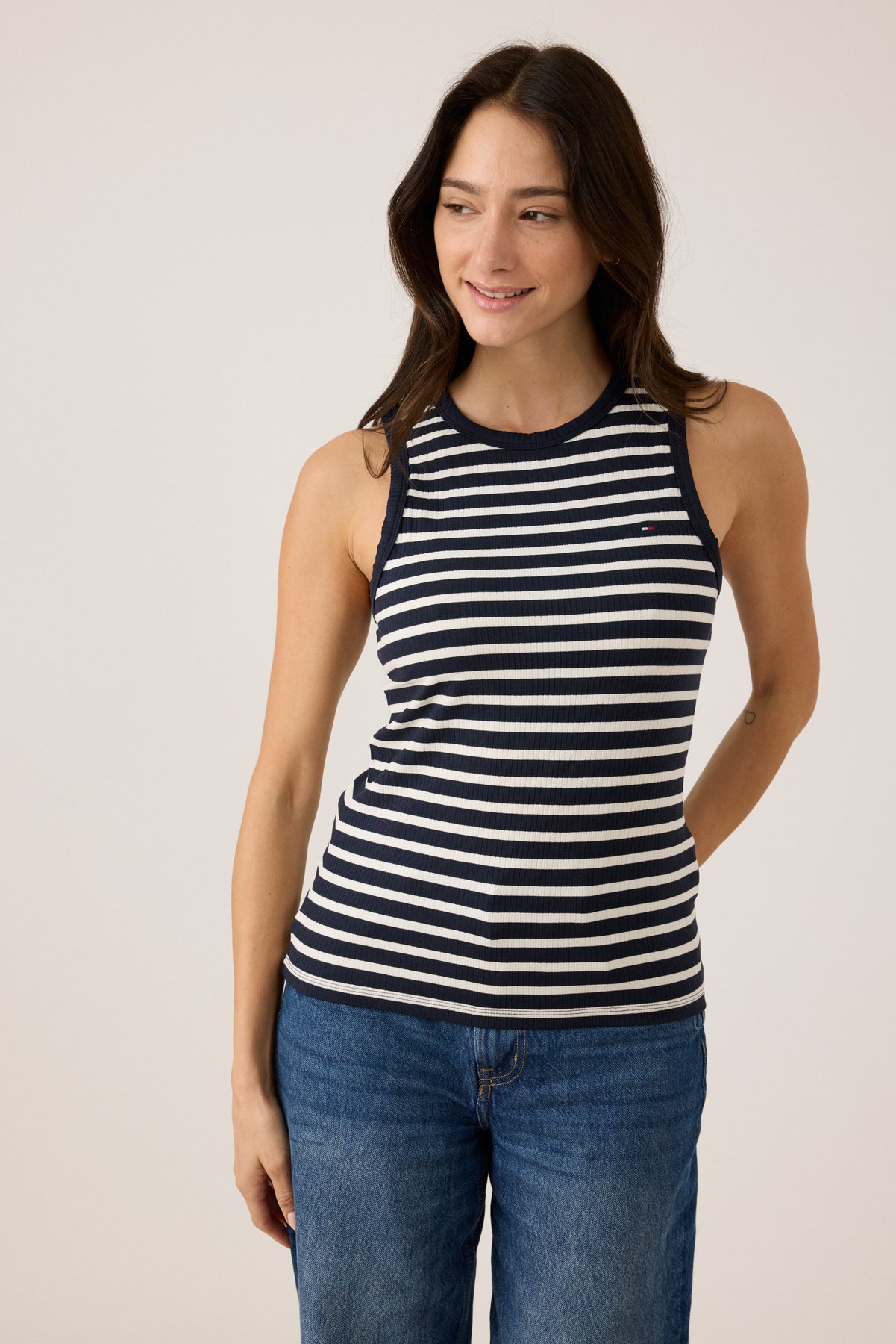 גופיית ריב לנשים בעיצוב פסים קלאסי ונקי, בד הריב הנעים יוצר התאמה מושלמת לגוף ומבטיח נוחות לאורך כל היום.
