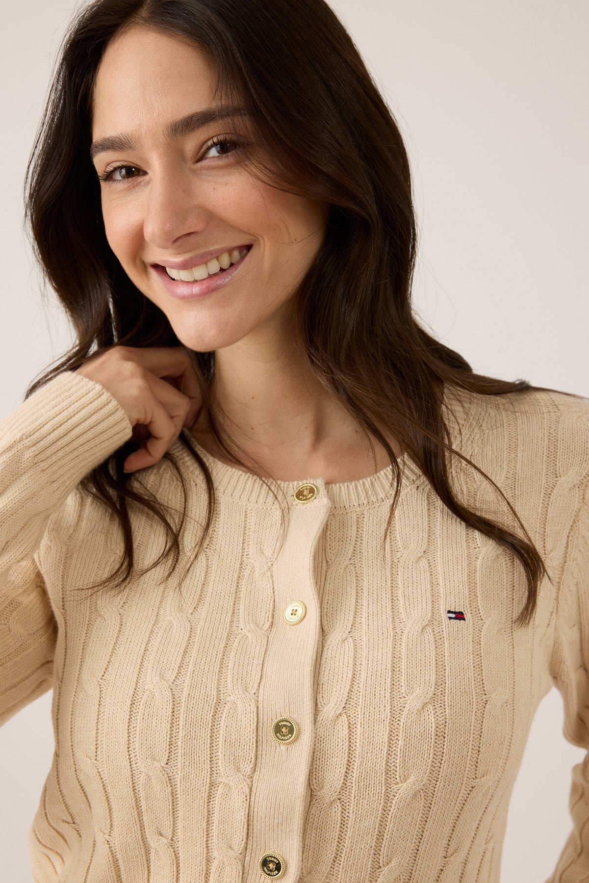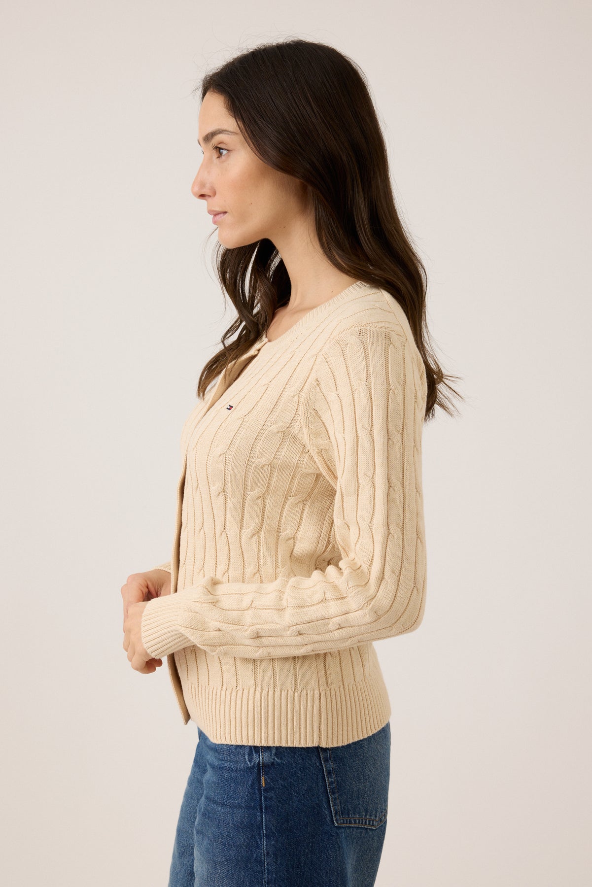 קרדיגן סריג לנשים בגזרת SLIM , המדגישה את קווי הגוף ויוצרת מראה נשי, אלגנטי . דוגמת הצמות הקלאסית מוסיפה עומק וטקסטורה יוקרתית, בעוד הכפתורים הקדמיים מעניקים נוחות וגמישות בלבישה – פתוח או סגור, לפי הסטייל.