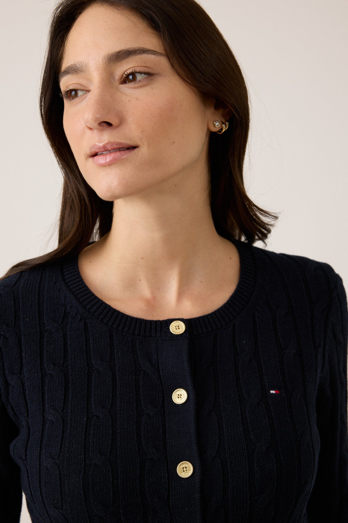 קרדיגן סריג לנשים בגזרת SLIM , המדגישה את קווי הגוף ויוצרת מראה נשי, אלגנטי . דוגמת הצמות הקלאסית מוסיפה עומק וטקסטורה יוקרתית, בעוד הכפתורים הקדמיים מעניקים נוחות וגמישות בלבישה – פתוח או סגור, לפי הסטייל.
