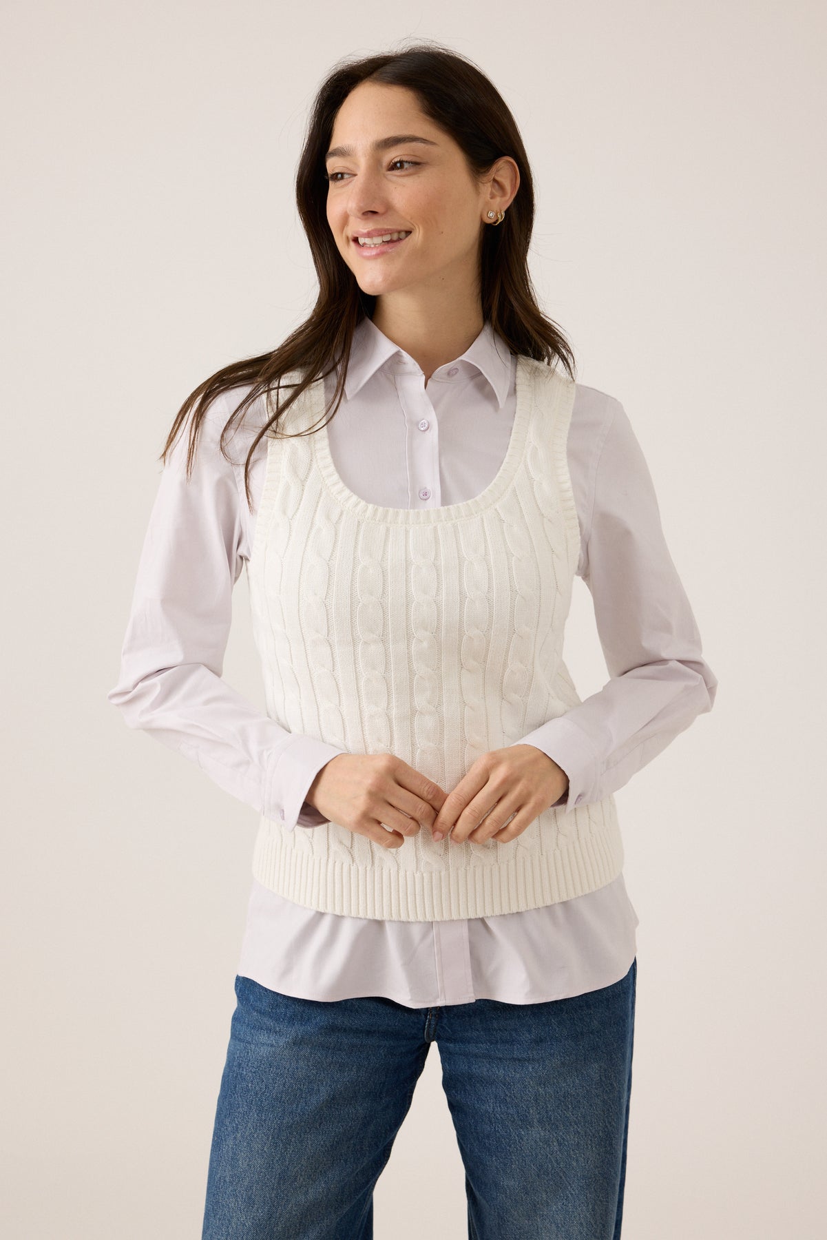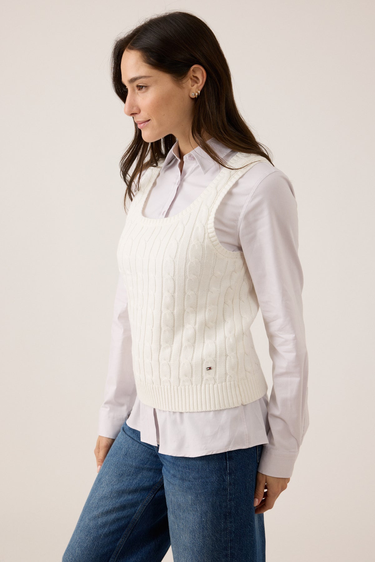 הפריט האלגנטי שישדרג כל מלתחה – סריג קלאסי מבית Tommy Hilfiger בגזרת וסט עליונית עם סריגת צמות עדינה. העיצוב הנקי והעל-זמני הופך אותו לפריט ורסטילי שניתן לשלב במגוון לוקים: