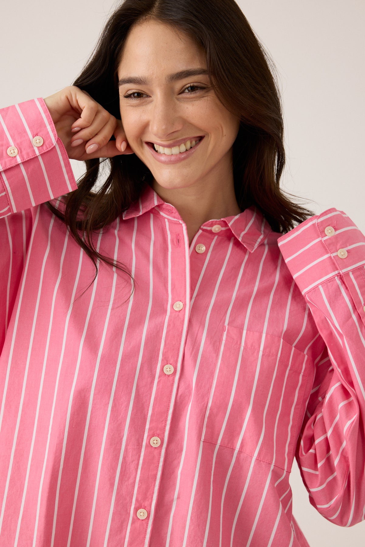 מכופתרת נשים ורודה שרוול ארוך