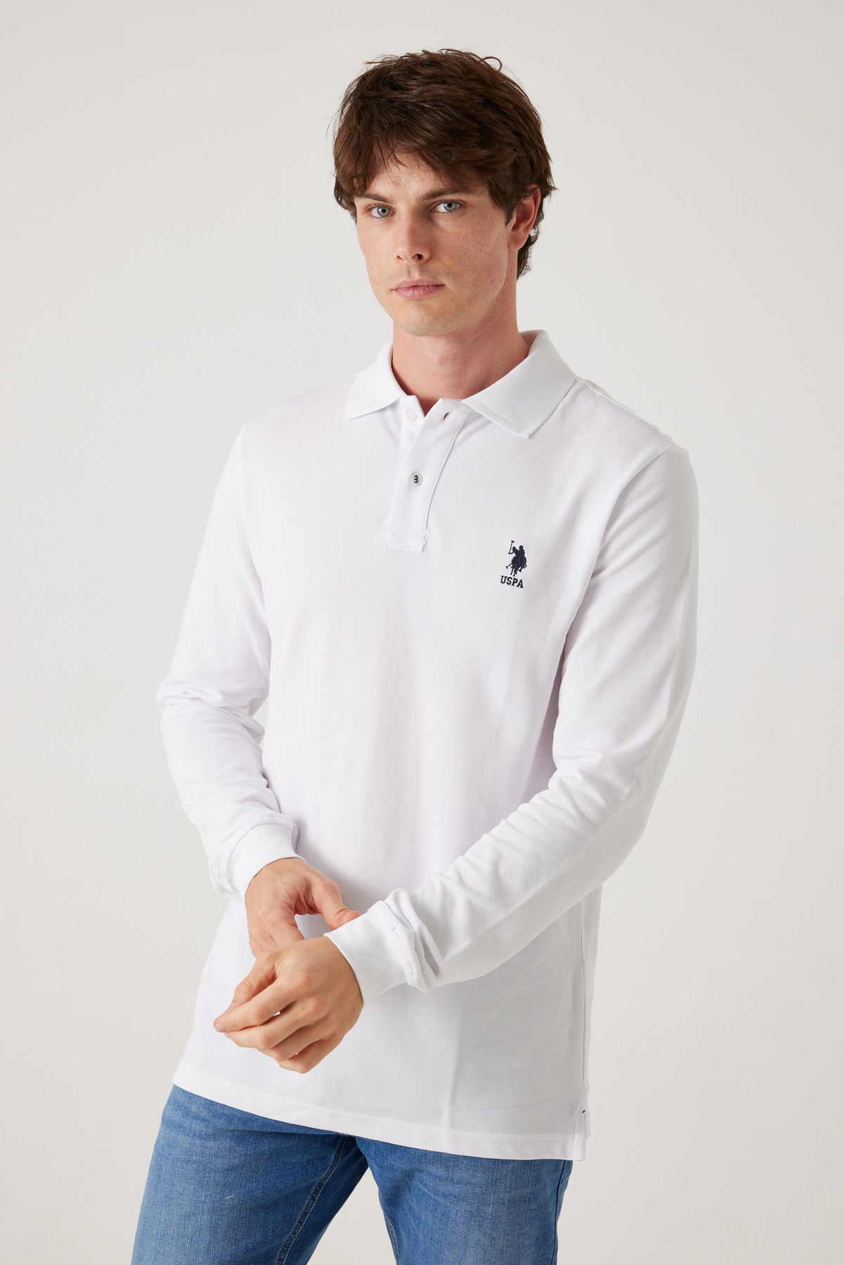 פולו שרוול ארוך - לבן