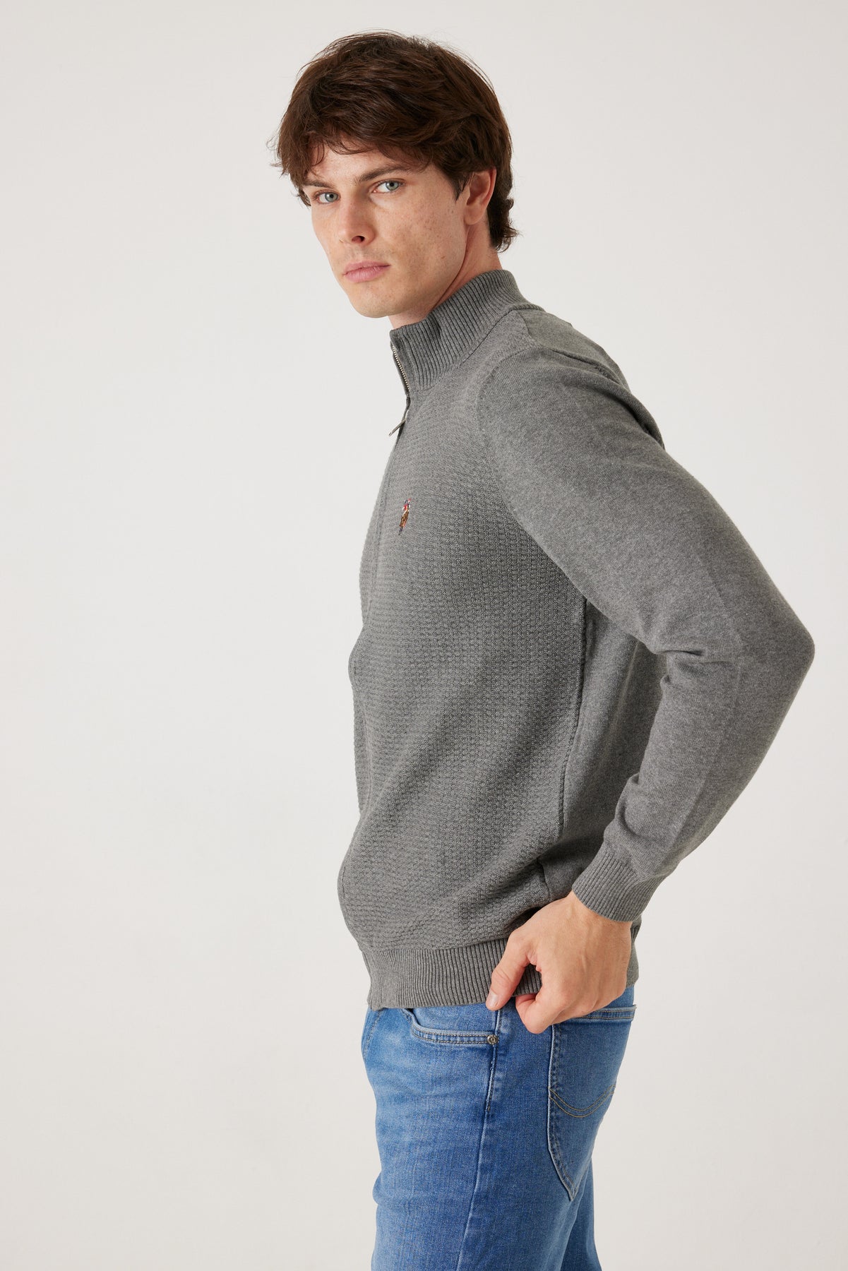 הכירו את הסוודר המושלם לעונת המעבר ולימי החורף – סוודר פול־זיפ של U.S. POLO , בעיצוב נקי ומוקפד שמעניק לכל לוק מראה יוקרתי ללא מאמץ.