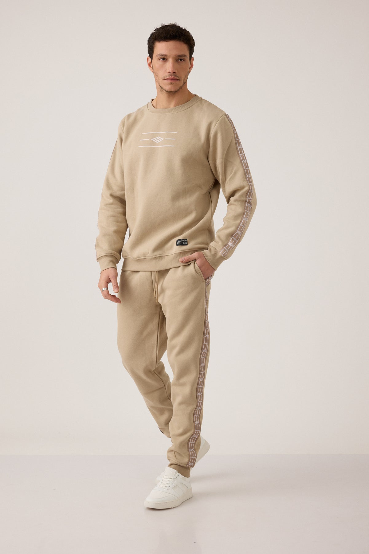 חליפת טרנינג קפוצ'ון ומכנס - אבן