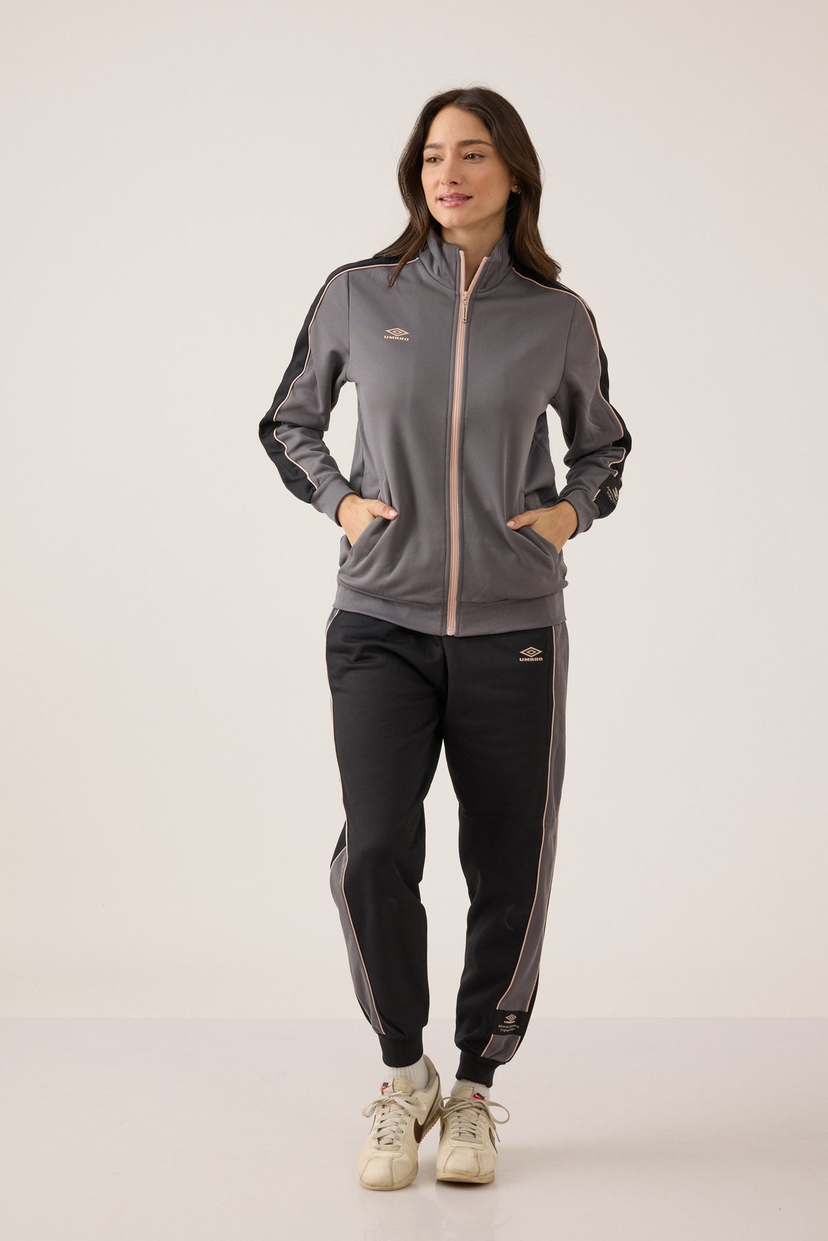 חליפת טרנינג קפוצ'ון ומכנס לנשים - אפור