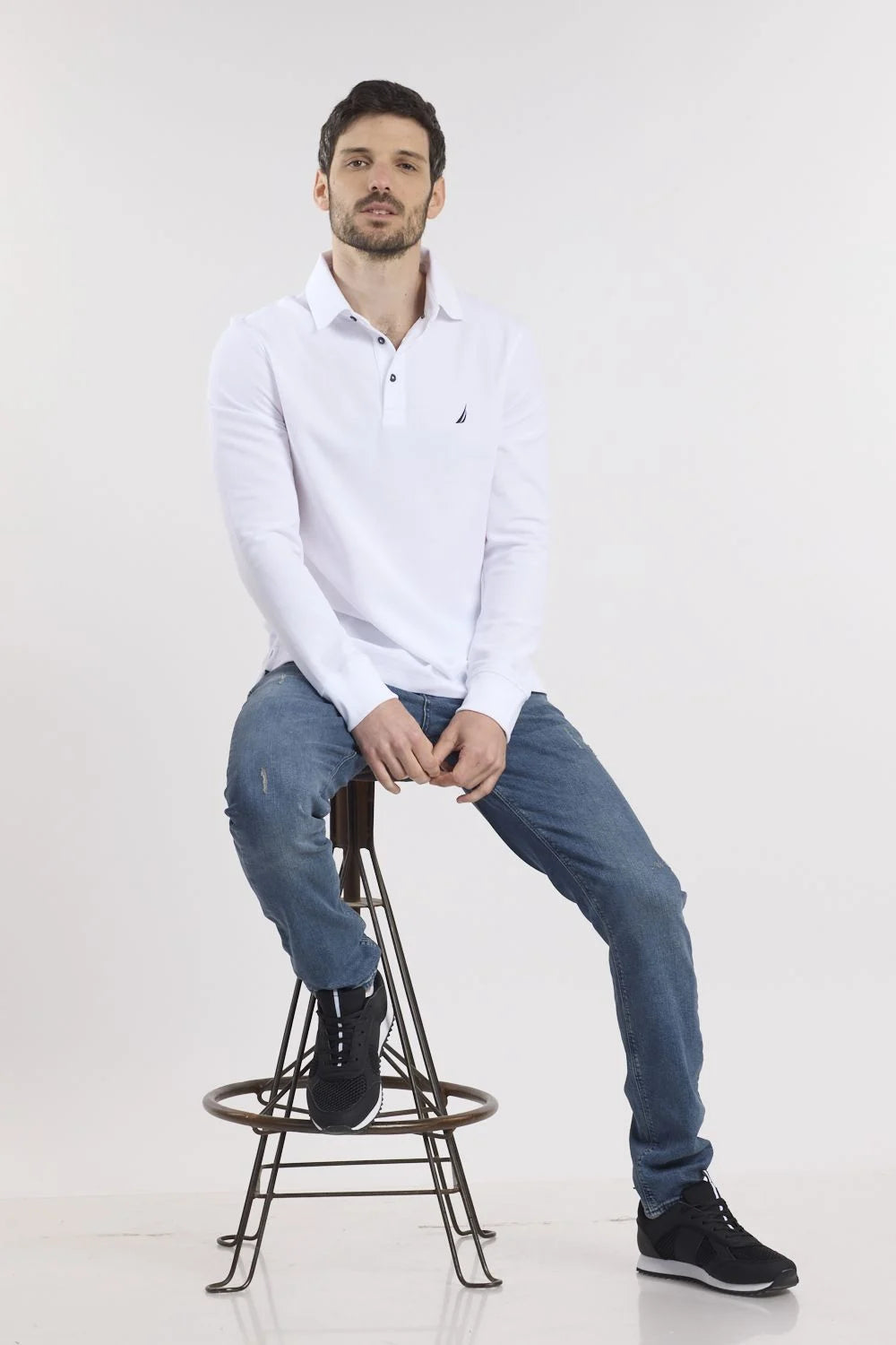• חולצת פולו קלאסית לגבר עם רקמת לוגו ושרוולים ארוכים.