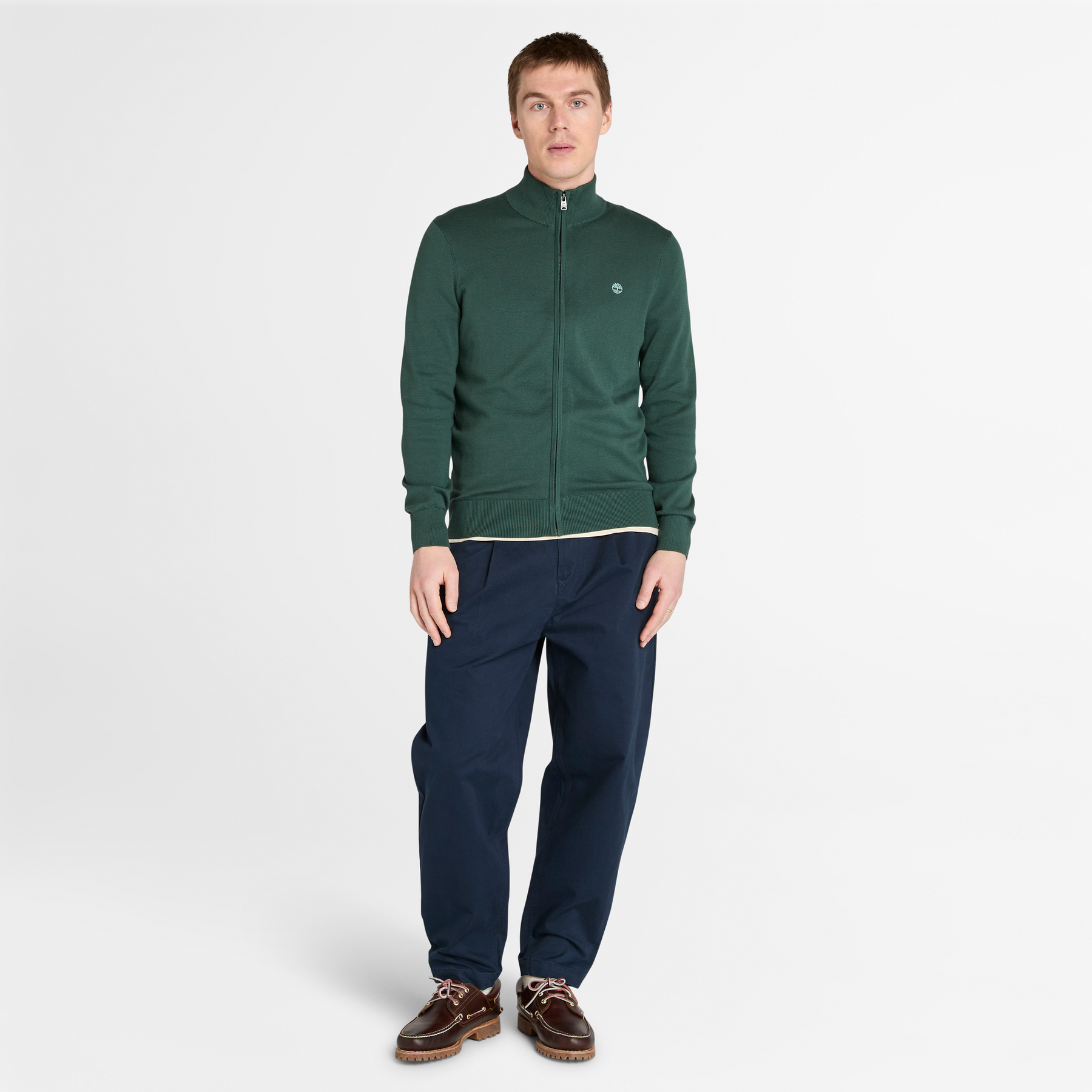 • סריג פול זיפ בצבע ירוק של TIMBERLAND