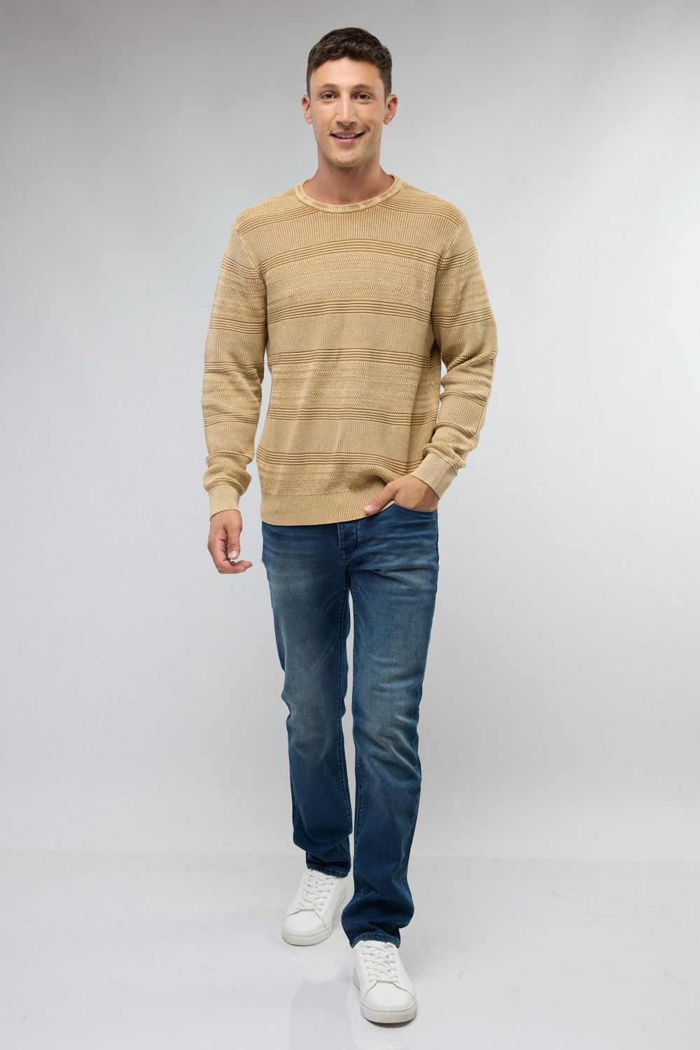 סוודר איכותי לגברים עם צווארון עגול, מעוצב בסגנון נקי ועדין.