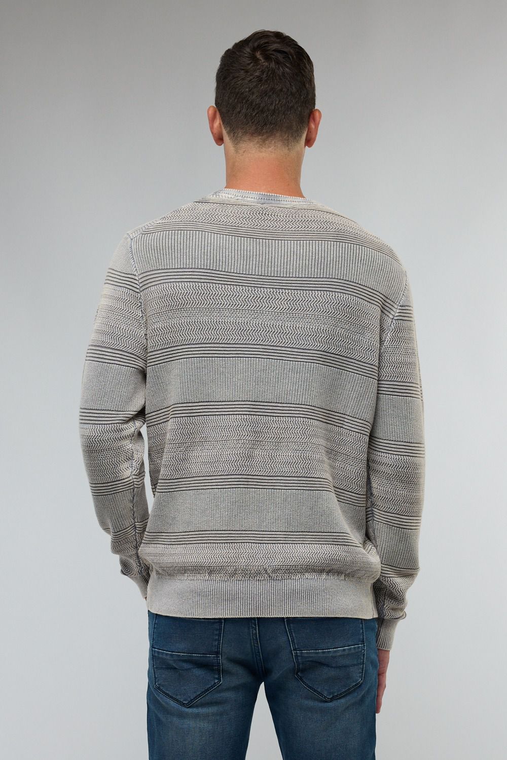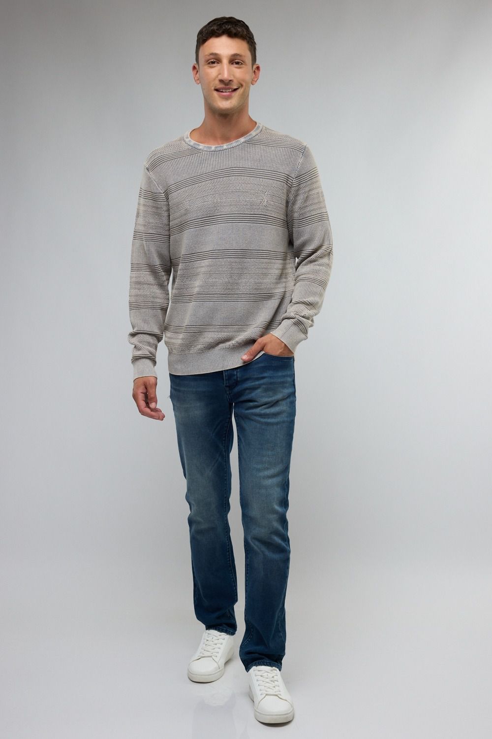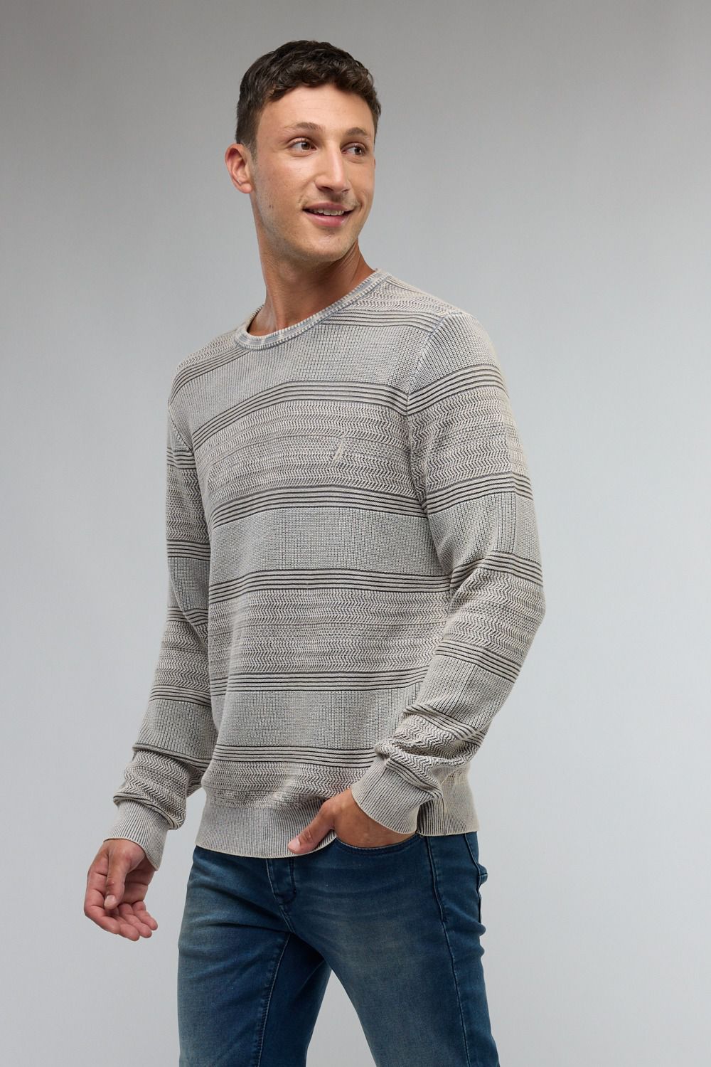 סוודר איכותי לגברים עם צווארון עגול, מעוצב בסגנון נקי ועדין.