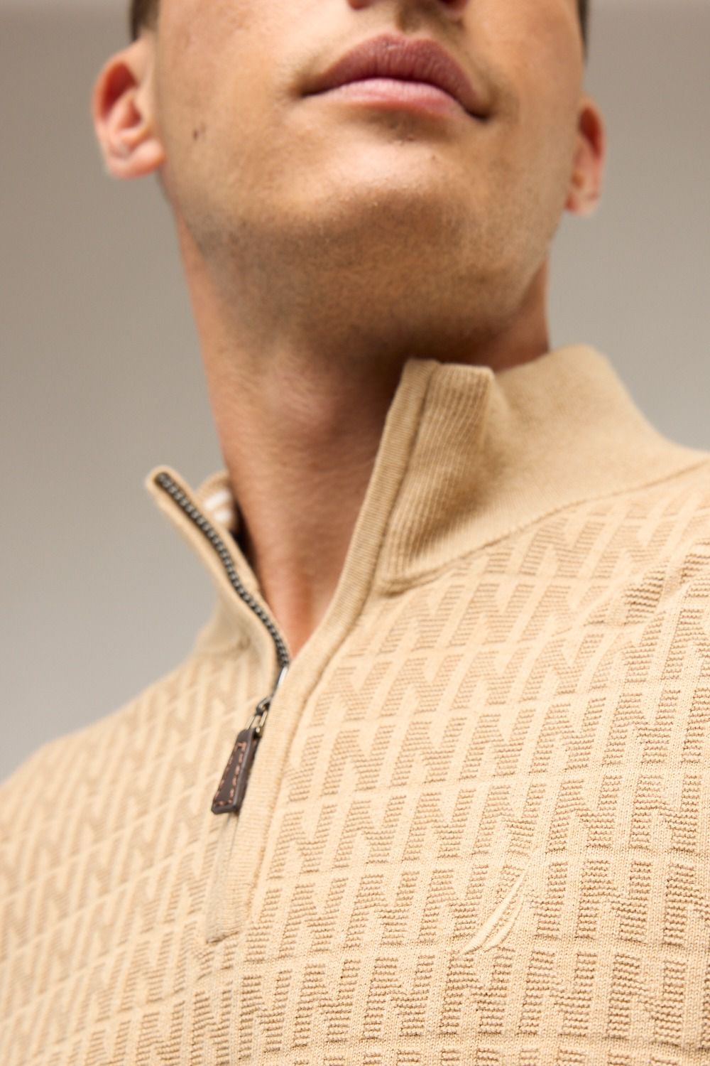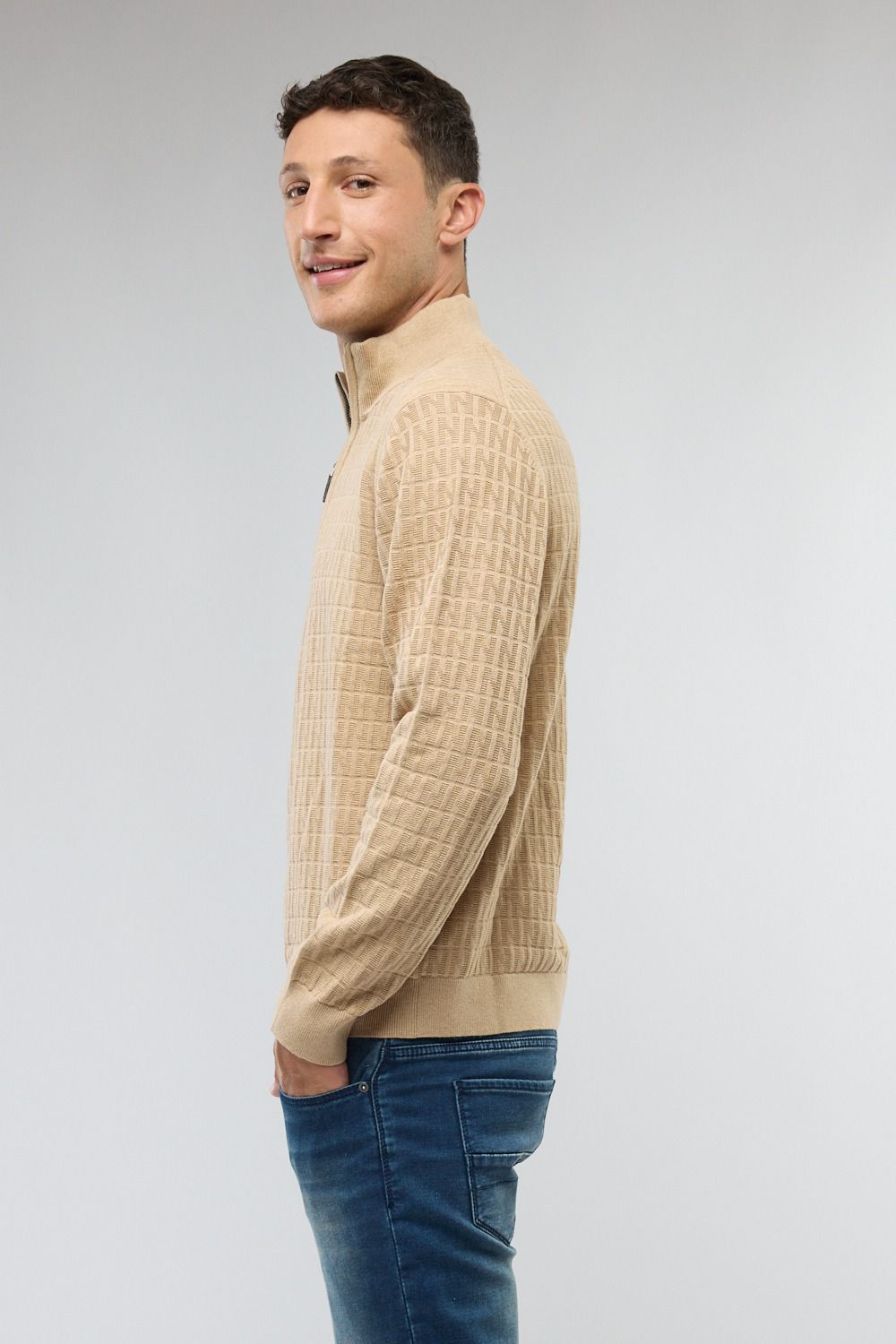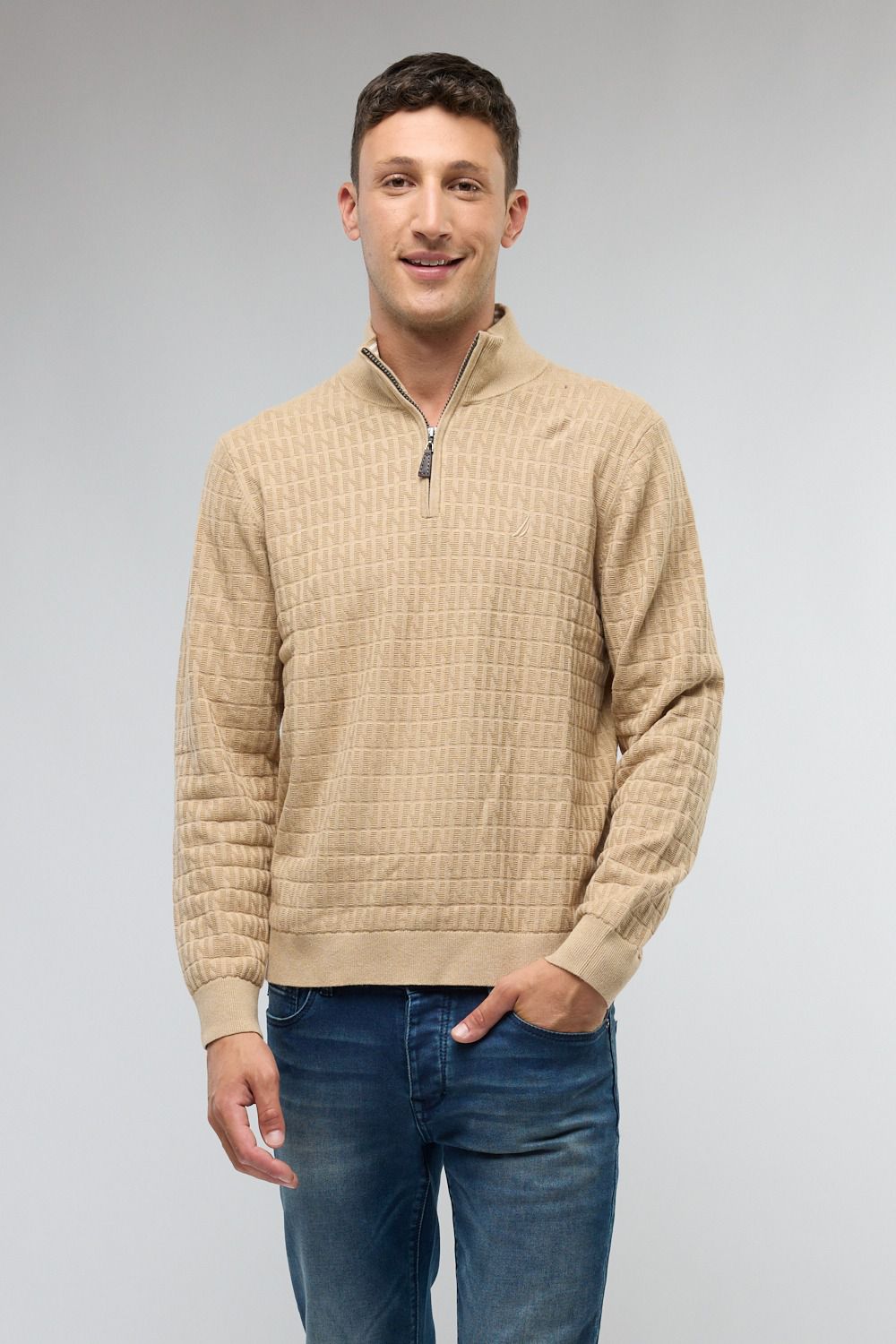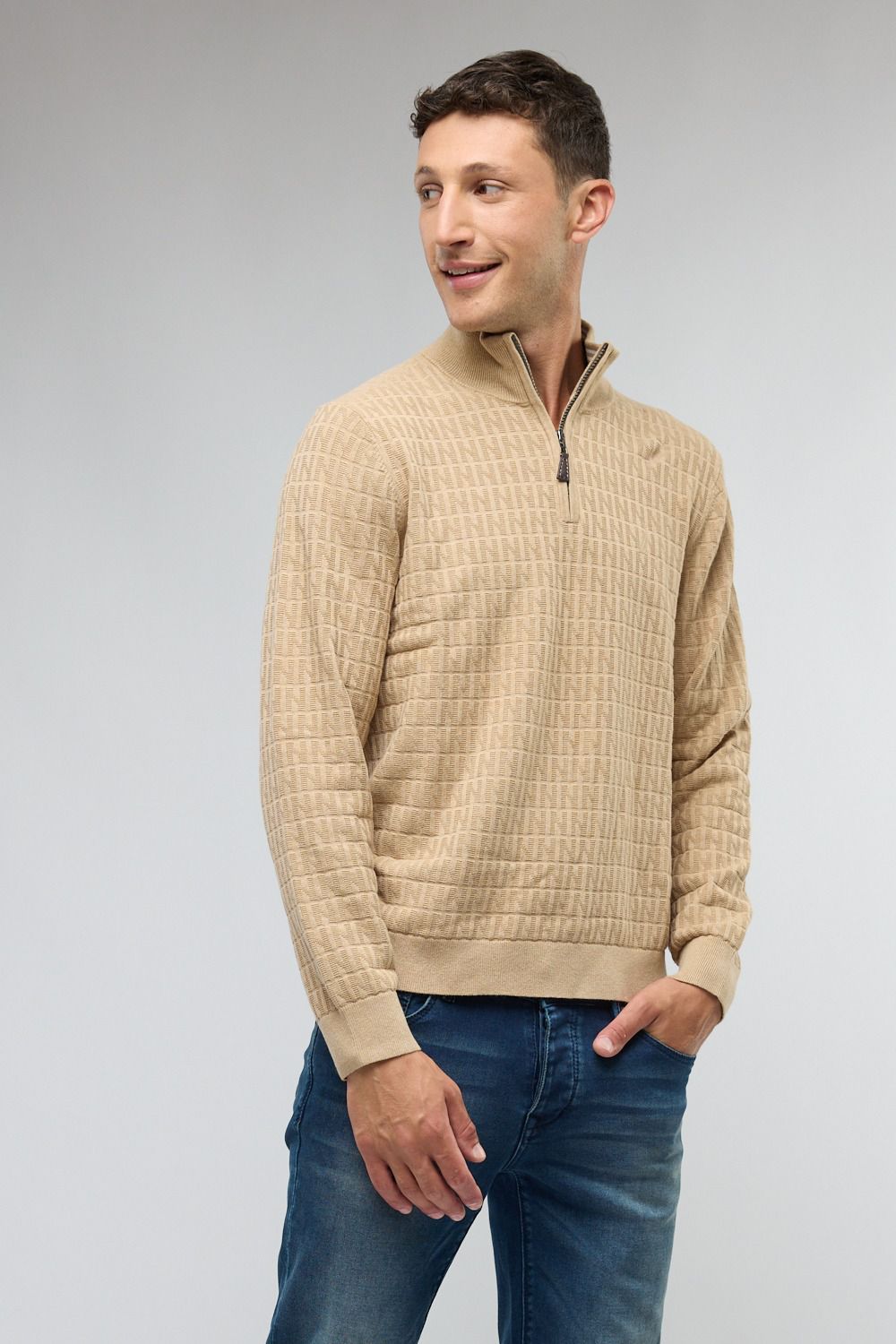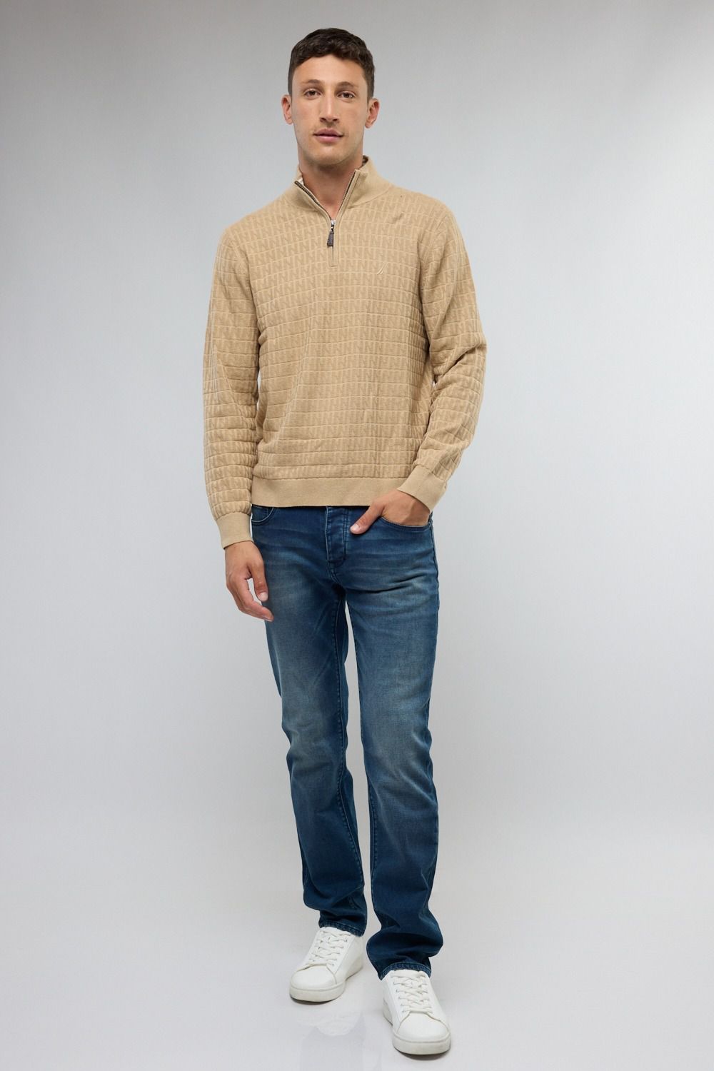 סריג לגברים עם רוכסן בצוארון ושרוולים ארוכים.
