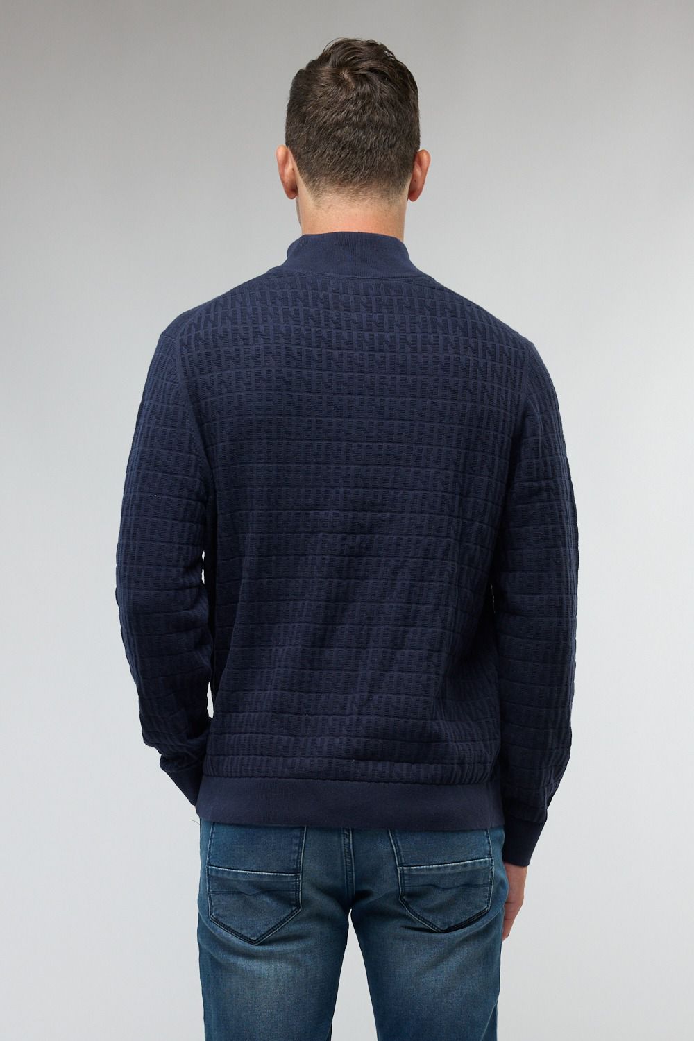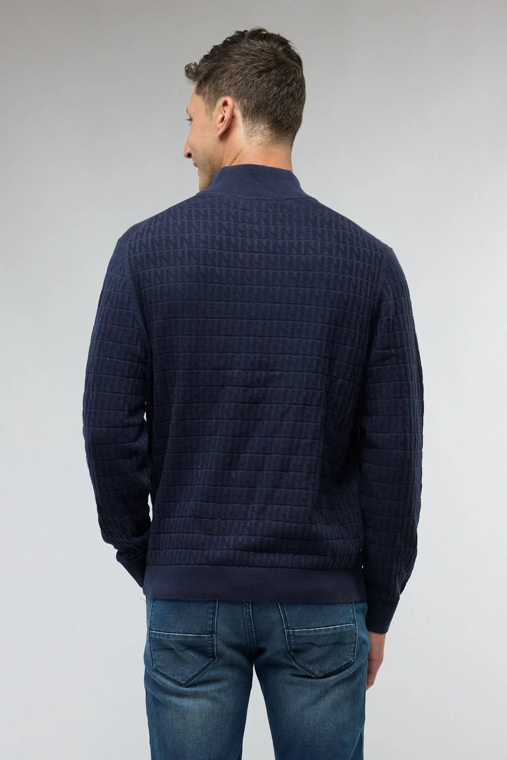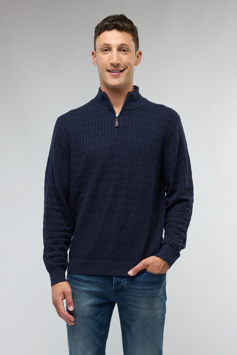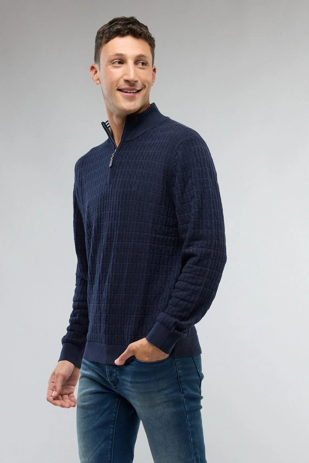 סריג לגברים עם רוכסן בצוארון ושרוולים ארוכים.