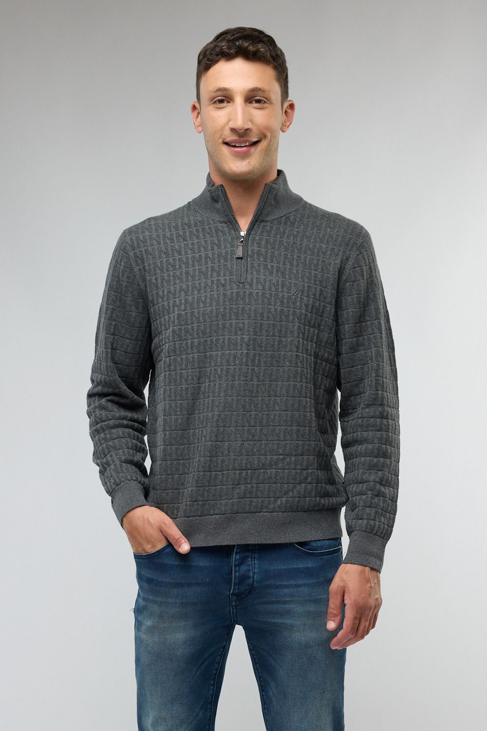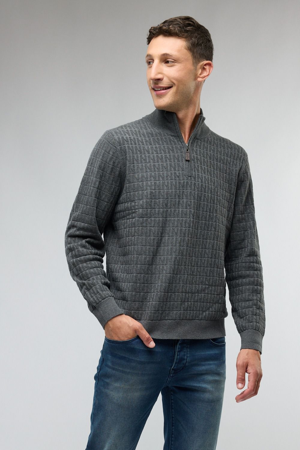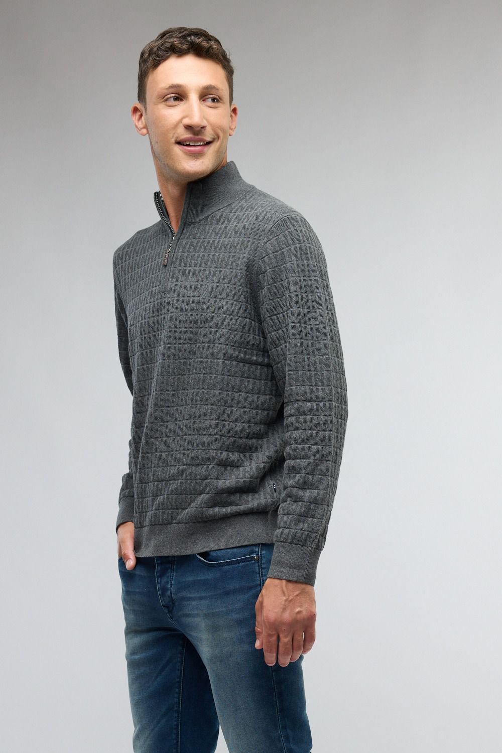 סריג Half Zip - אפור