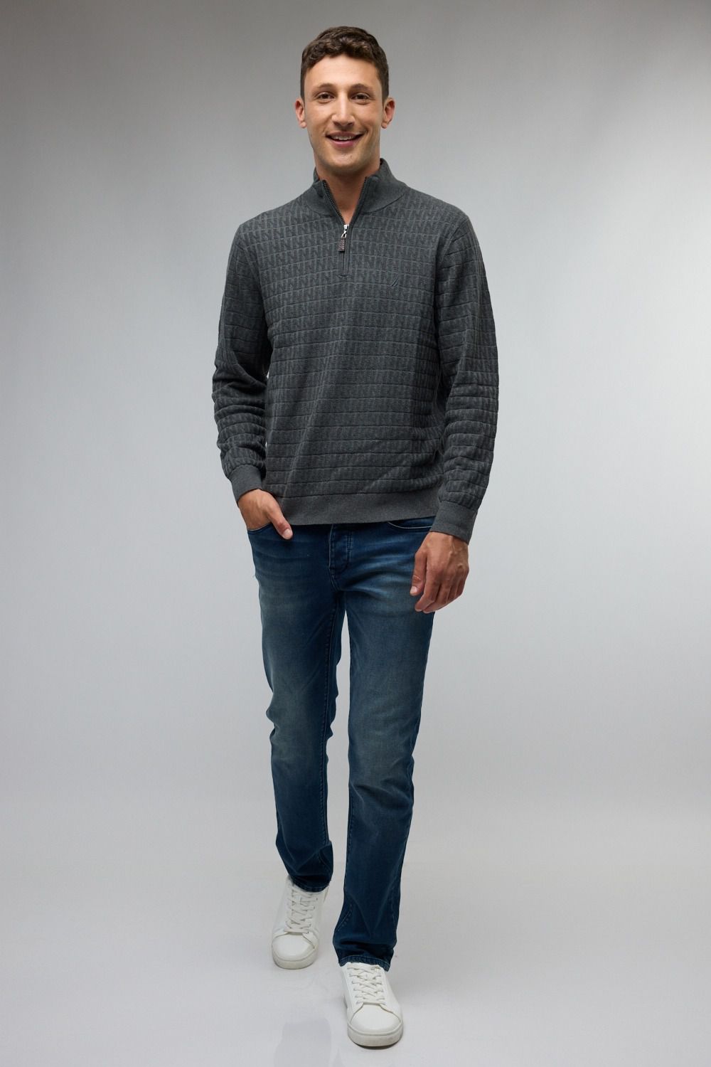 סריג לגברים עם רוכסן בצוארון ושרוולים ארוכים.