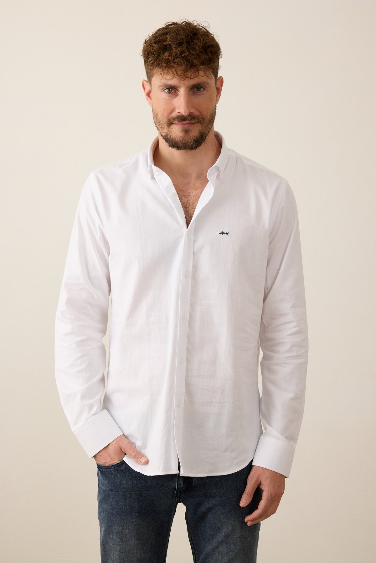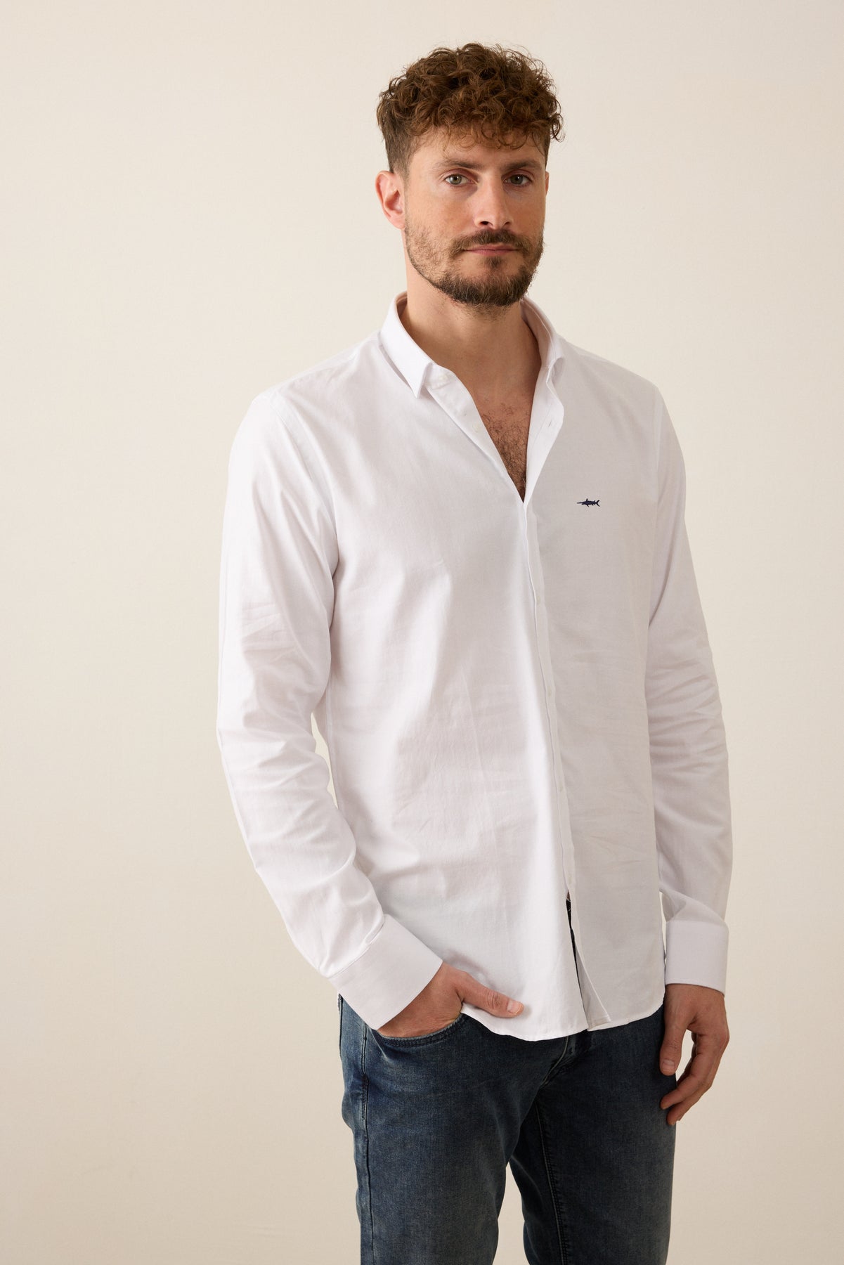 חולצה מכופתרת לגברים מבית AMERICAN ISLAND בגזרת OXFORD קלאסית, המשלבת מראה אלגנטי מוקפד עם נוחות יומיומית. בד האוקספורד הייחודי מעניק טקסטורה עדינה ומראה עשיר. הרכב הבד: 95% כותנה