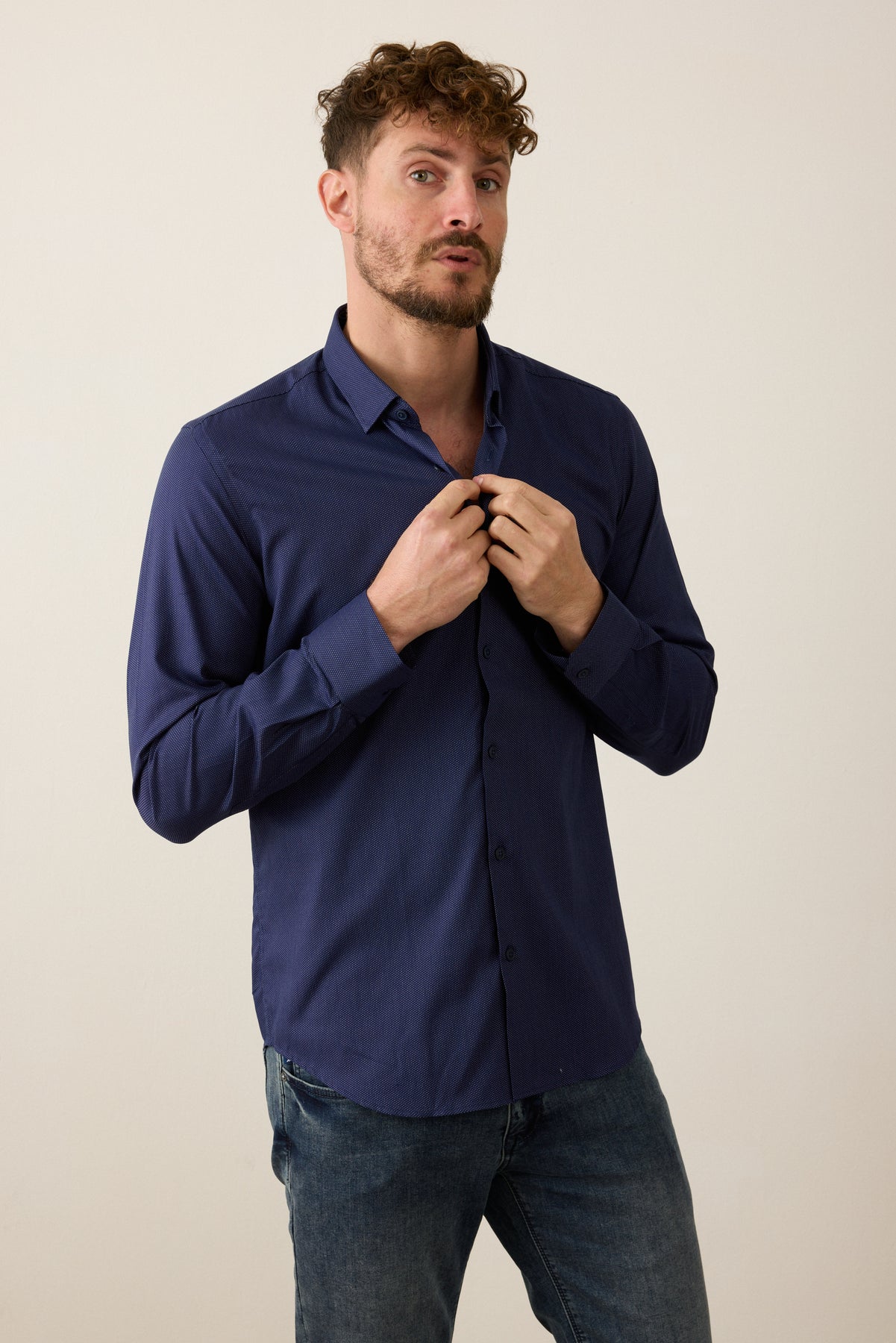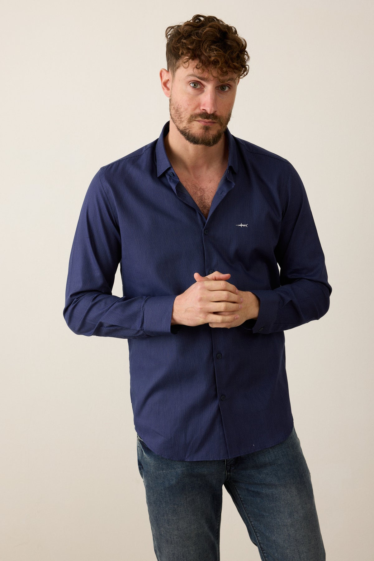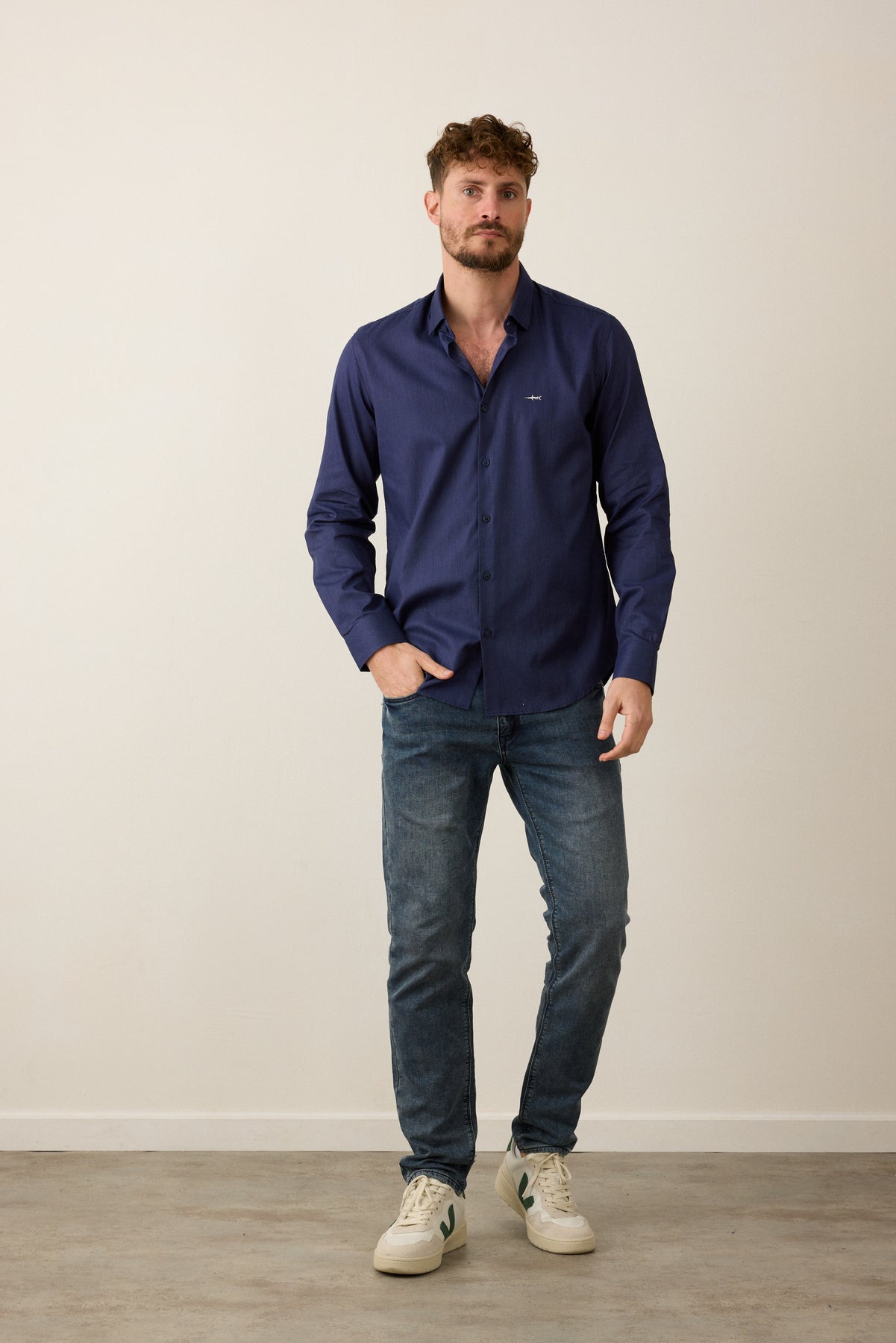 חולצה מכופתרת לגברים מבית AMERICAN ISLAND, המשלבת מראה אלגנטי מוקפד עם נוחות יומיומית מושלמת. גזרת SLIM FIT קלאסית מעניקה התאמה נוחה ומחמיאה, ומתאימה במיוחד למי שמחפש לוק מדויק – מבלי להתפשר על חופש תנועה.