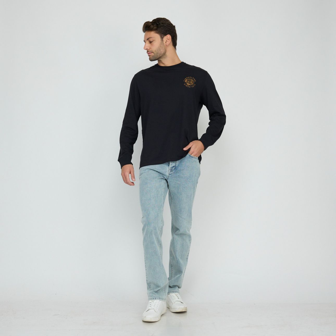 טישרט שרוול ארוך עם עם הדפס בגב - שחור