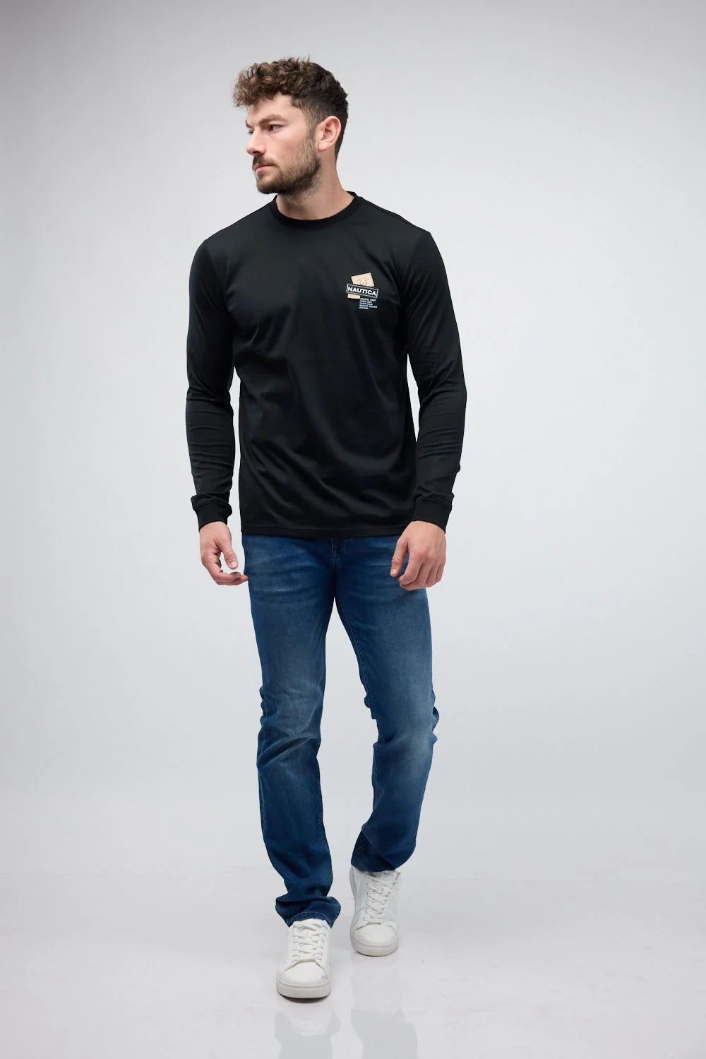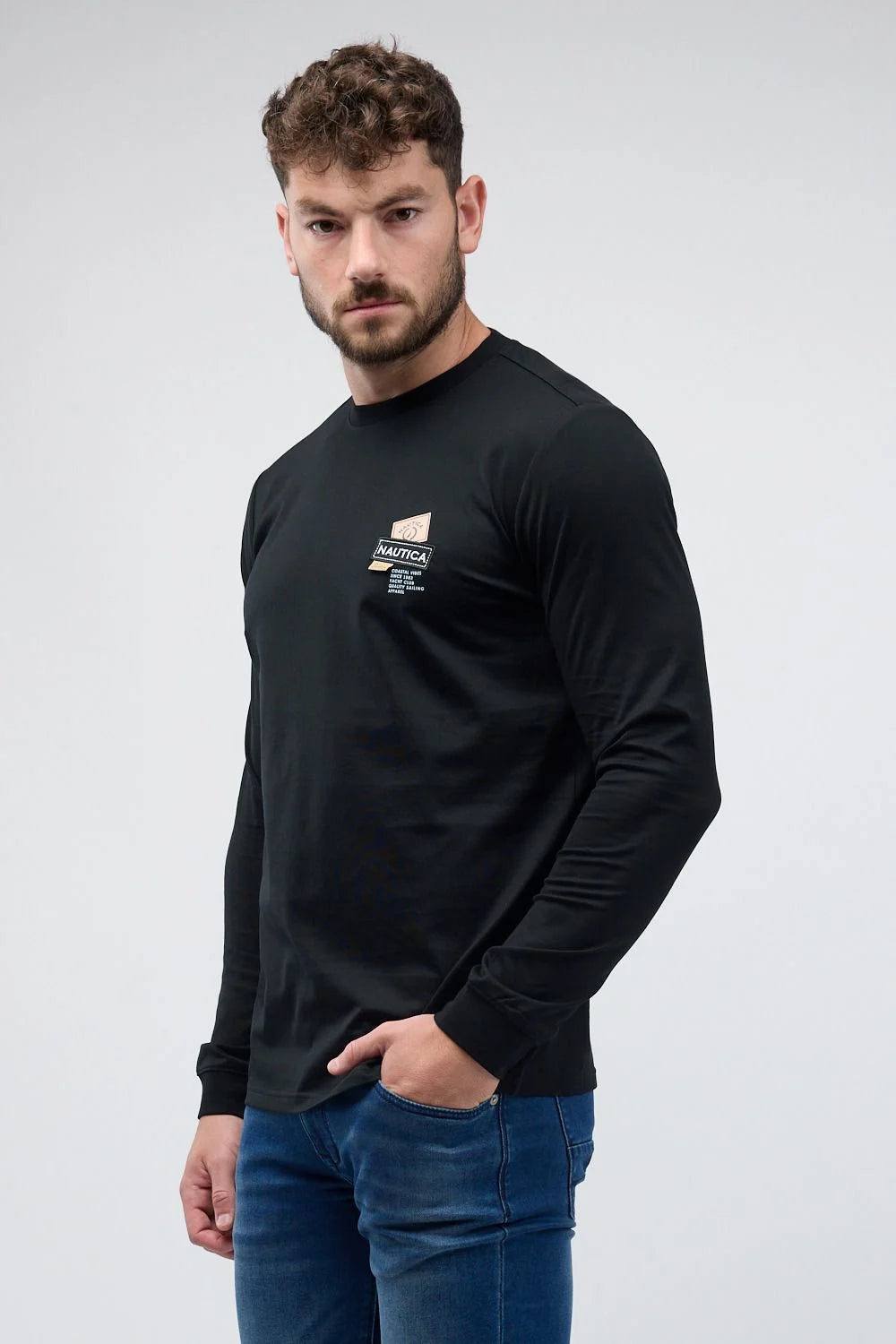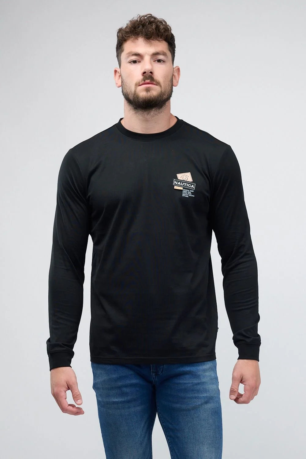 טי שירט לגברים עם צווארון עגול ושרוולים ארוכים מבית Nautica