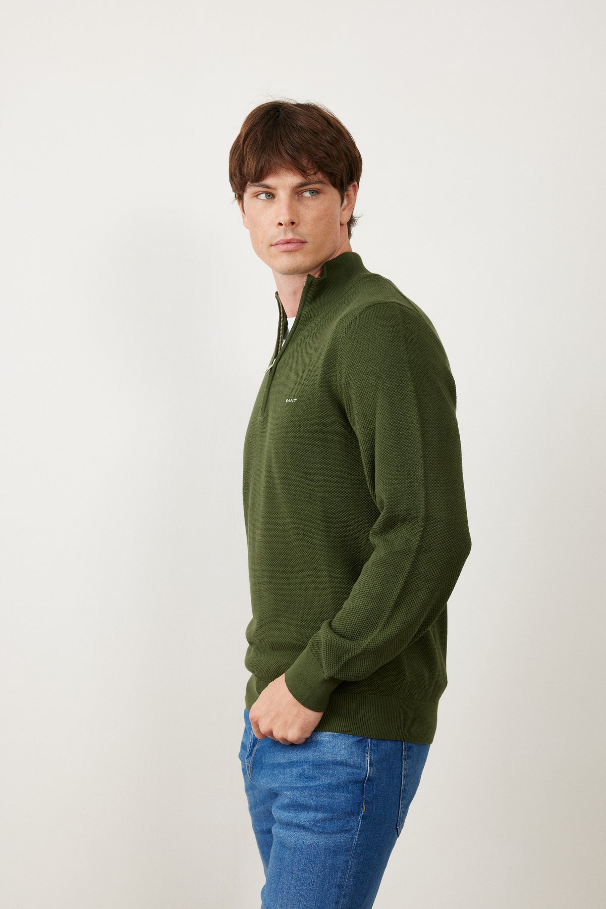 עשוי מ־100% כותנה איכותית ורכה, עם רוכסן חצי זיפלאורך כל הסריג וצווארון עומד המעניקים מראה מתוחכם וקליל גם יחד.