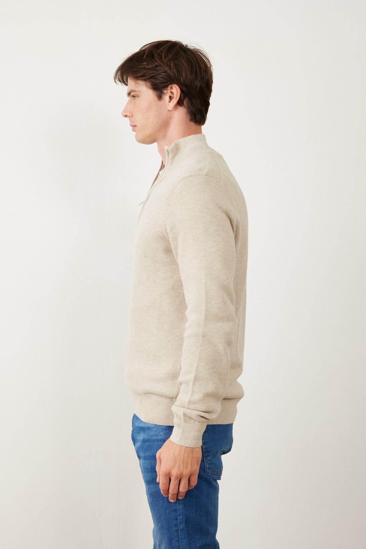 עשוי מ־100% כותנה איכותית ורכה, עם רוכסן חצי זיפלאורך כל הסריג וצווארון עומד המעניקים מראה מתוחכם וקליל גם יחד.