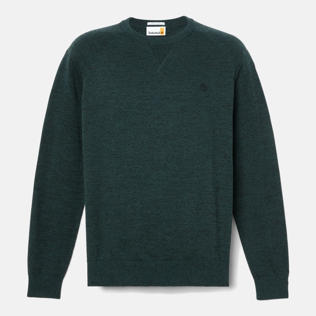 סריג כותנה עם צווארון עגול - ירוק כהה